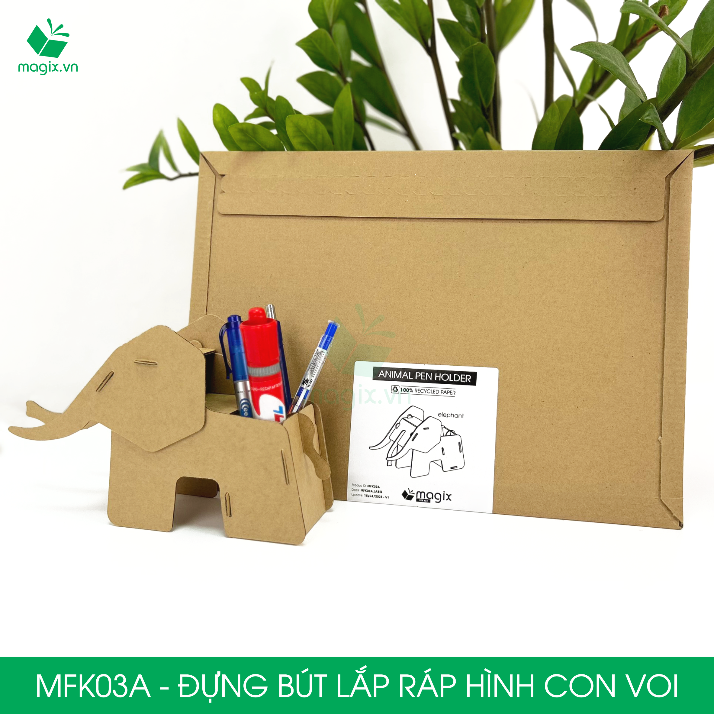 Chất liệu: MFK03A - Đựng Bút Hình Con Voi được làm từ giấy Carton 3 lớp cao cấp với chất lượng giấy siêu cứng giúp cho sản phẩm gọn nhẹ nhưng vẫn đảm bảo độ bền cao.