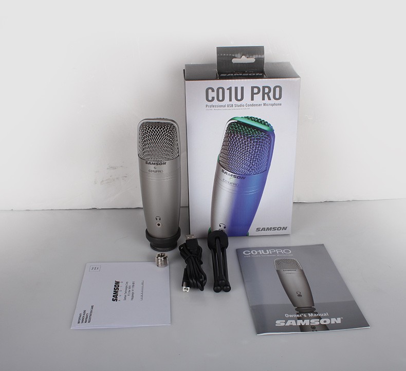 Micro thu âm USB Samson C01U Pro được cấu tạo với một màng thu lớn 19mm, và một dải tần số đáp ứng rộng khiến cho việc tái tạọ lại âm thanh thu được rất hiệu quả ngay cả với các âm tần số thấp và thể hiện các âm tần số cao một rất mịn.. Âm thanh được xử lý và xuất ra với chuẩn âm thanh 16-bit lấy mẫu 44,1- 48kHz, Micro thu âm C01U cung cấp độ chính xác từ những gì micro thu âm được so với những gì bạn nghe được thực tế. Đặc điểm dễ sử dụng, không kén chọn và yêu cầu thiết bị đi kèm, cổng kết nối và nguồn trực tiếp từ USB tích hợp soundcard sẵn trong mic. Micro thu âm Samson C01U Pro được nhập khẩu trực tiếp từ MỹThông số kỹ thuật: - Kiểu micro: condenser usb- Hướng thu: Hypercardioid - Tần số đáp ứng: 20Hz-18khz - Mức áp lực âm thanh đầu vào tối đa: 136 dB - Kích thước màng thu: 19mm - Cao x Ngang x Đường kính: 177,8 x 54 x 54 mm- Trọng lượng: 481 grMICRO SAMSON C01U PRO CÓ THÊM CỔNG TAI NGHE TRÊN THÂN MICROMicro thu âm Samson USB dùng thu Voice, giọng hát, lồng tiếng, họp trực tuyến, hổ trợ âm thanh tốt, trung thực, làm dày chất giọng.
