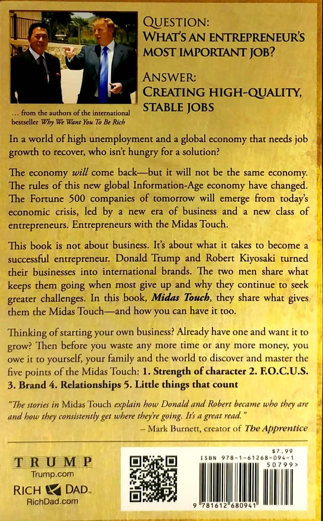In this title, two entrepreneurial Icons share experiences and insights into creating and building successful businesses. What makes some business owners wildly successful? What separates the entrepreneurs who build businesses from ones who just seem to create more work for themselves? How, exactly do the world's most prominent business builders seem to hit home run after home run? The answer: They have the Midas Touch. Donald Trump and Robert Kiyosaki believe the world needs more entrepreneurs.