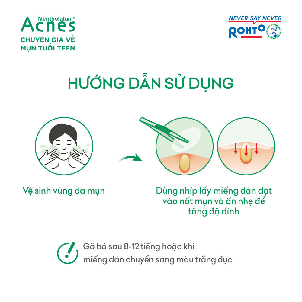 Miếng dán mụn giúp Giảm Mụn Sưng Viêm Acnes Clear Patch mang lại 3 tác động nổi bật: GIẢM MỤN – BẢO VỆ – CHE PHỦ. Với độ dày chỉ 0,2 mm, miếng dán mụn