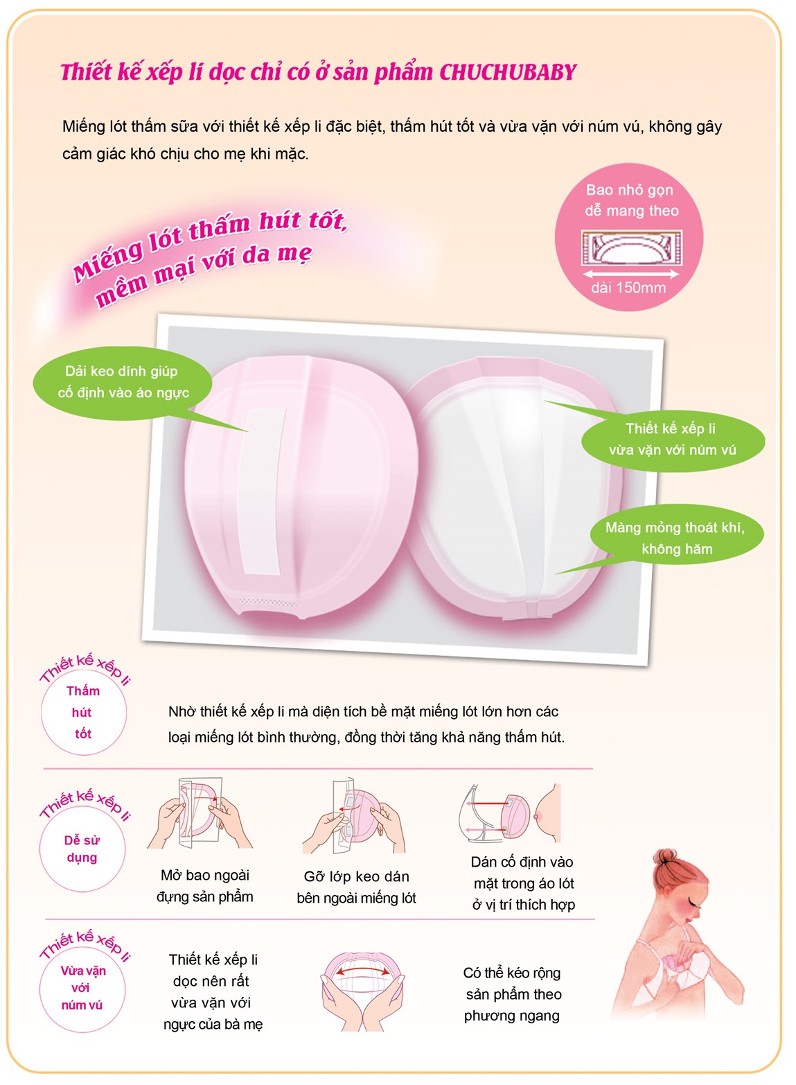 - An toàn đối với cả những người có làn da nhạy cảm Hướng dẫn sử dụng và bảo quản miếng lót thấm sữa ChuChuBaby: