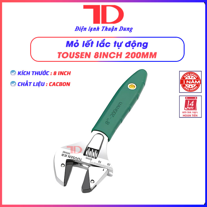 Mua tại TiktokĐIỆN LẠNH THUẬN DUNG Cam Kết: Tất cả sản phẩm đều được test và đóng gói nghiêm chỉnh trước khi chuyển cho khách Gửi đúng hàng hóa như đã mô tả , mọi sự thay đổi đều được thông báo trước THÔNG TIN SẢN PHẨM: Mỏ lết lắc tự động từ 8 inch 10 inch và 12 inch, Điện lạnh Thuận Dung Chất liệu: thép Thiết kế răng đảo ngược 2 đầu Có 3 kích thước: 8 - 10 - 12 INCH Thông số của của mỏ lết Mẫu 8 INCH