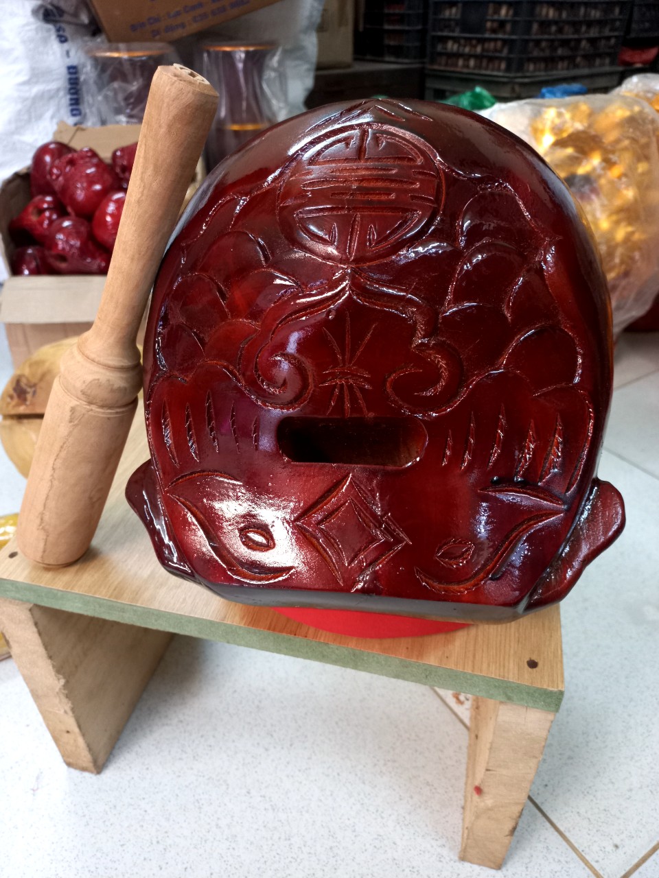 Mua tại TiktokMõ tụng kinh niệm phật được làm bằng chất liệu gỗ mít liền khối tự nhiên 100% ,Và được sơn pu phun mầu mận chín Kích thước 12cm + dùi đánh và đế cuốn chân mõ đủ bộ _ Mõ tụng kinh được thiết kế theo kiểu dáng hình bầu dục ,phần thân khắc hình vẩy rồng, và nhiều hoa văn khác nhau ,Đi hầu hết tất cả mọi chi tiết góc ngách của Mõ được ,được ngọt tỉa chỉnh sửa ,Mọi chi tiết nội dung hoa văn hoàn toàn bằng tay thủ công .Mõ được làm và hoàn thiện do bàn tay khối óc tài hoa ,Từ những người thợ giàu kinh nghiệm ,Cũng như tay nghề cao trong làng nghề truyền thống