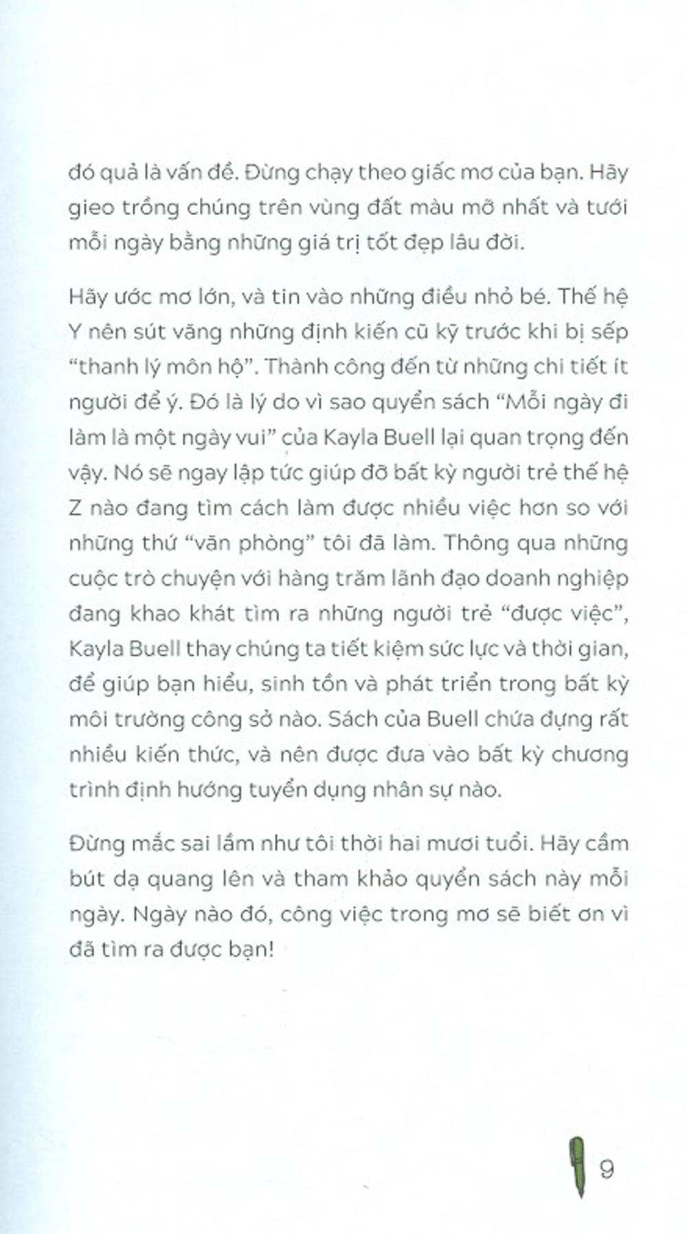 MỖI NGÀY ĐI LÀM LÀ MỘT NGÀY VUI trao cho bạn các tuyệt chiêu giúp sinh tồn chốn công sở, ứng phó với những người khó chịu, biết phát triển bản thân trong công việc, trở thành con người mà mình hằng mong muốn và thật sự khiến cho MỖI NGÀY ĐI LÀM LÀ MỘT NGÀY VUI.