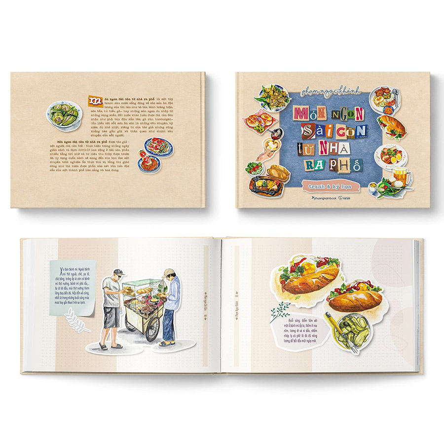 Món Ngon Sài Gòn Từ Nhà Ra Phố là một tập tranh màu nước sống động về các món ăn đặc trưng của Sài Gòn như bò bía, bánh tráng trộn, cơm tấm, hủ tiếu gõ, hay những món ngon du nhập từ những vùng miền, đất nưốc khác luôn được sài Gòn đón nhận như phở, bún đậu mắm tôm, gà rán, hamburger, Gắn liền với mỗi món ăn còn là những câu chuyện, kỷ niệm, dù nhỏ nhặt, riêng tư của tác giả nhưng cũng không kém gần gũi và thân quen như chính câu chuyện của mỗi người.
