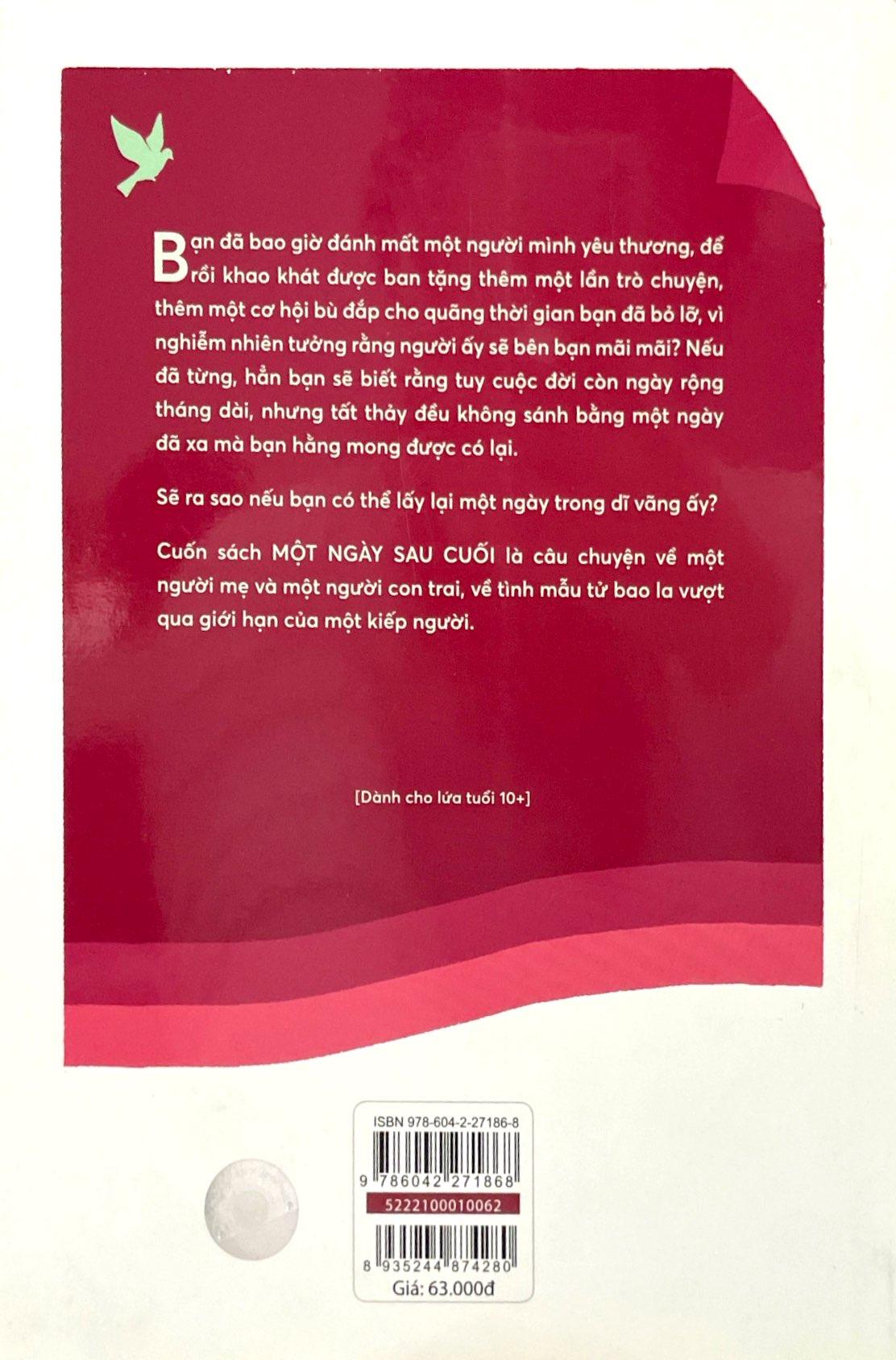Cuốn sách MỘT NGÀY SAU CUỐI là câu chuyện về một người mẹ và một người con trai, về tình mẫu tử bao la vượt qua giới hạn của một kiếp người.