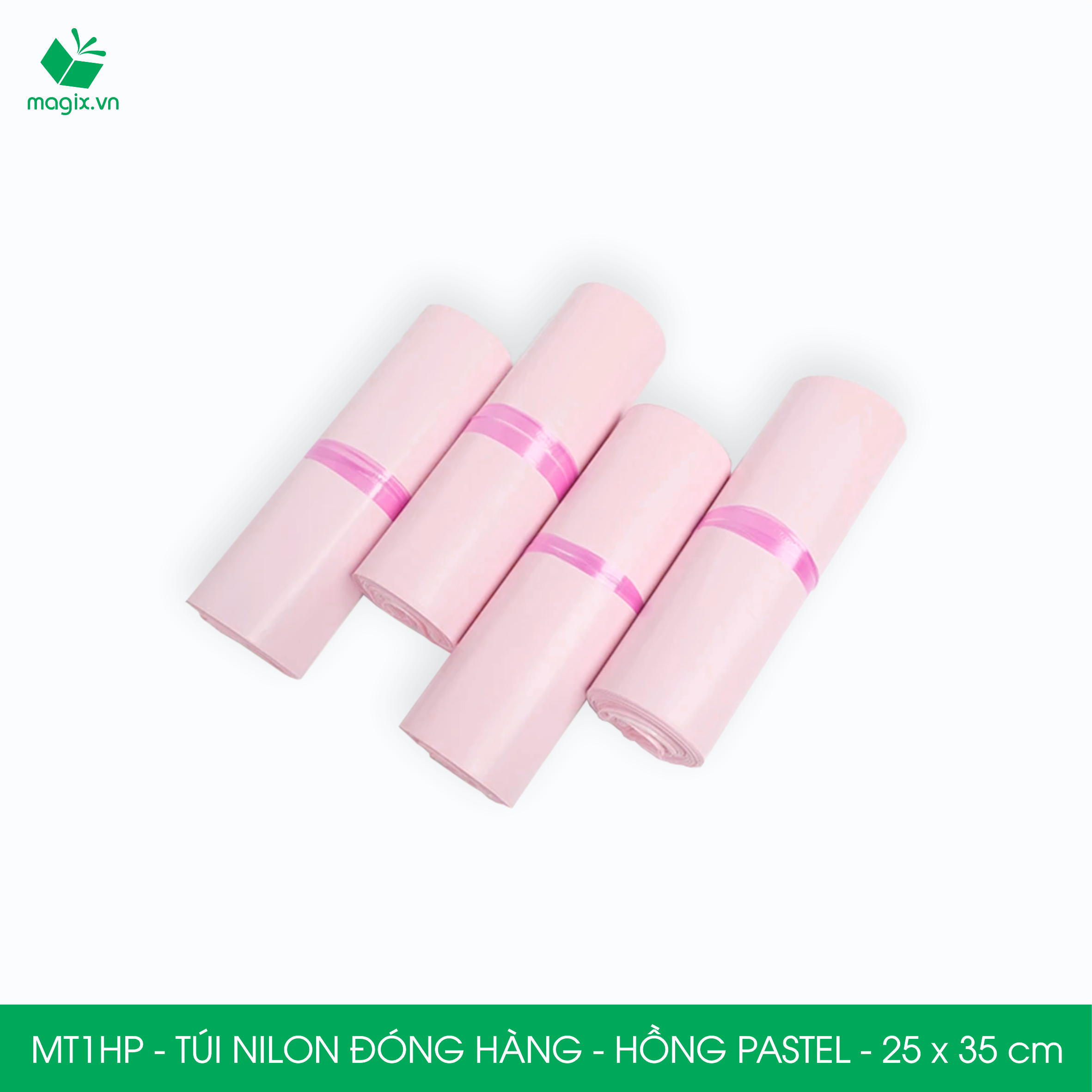 ✨MT1HP - 25x35 cm - Túi nilon gói hàng - 300 túi niêm phong đóng hàng màu hồng pastel