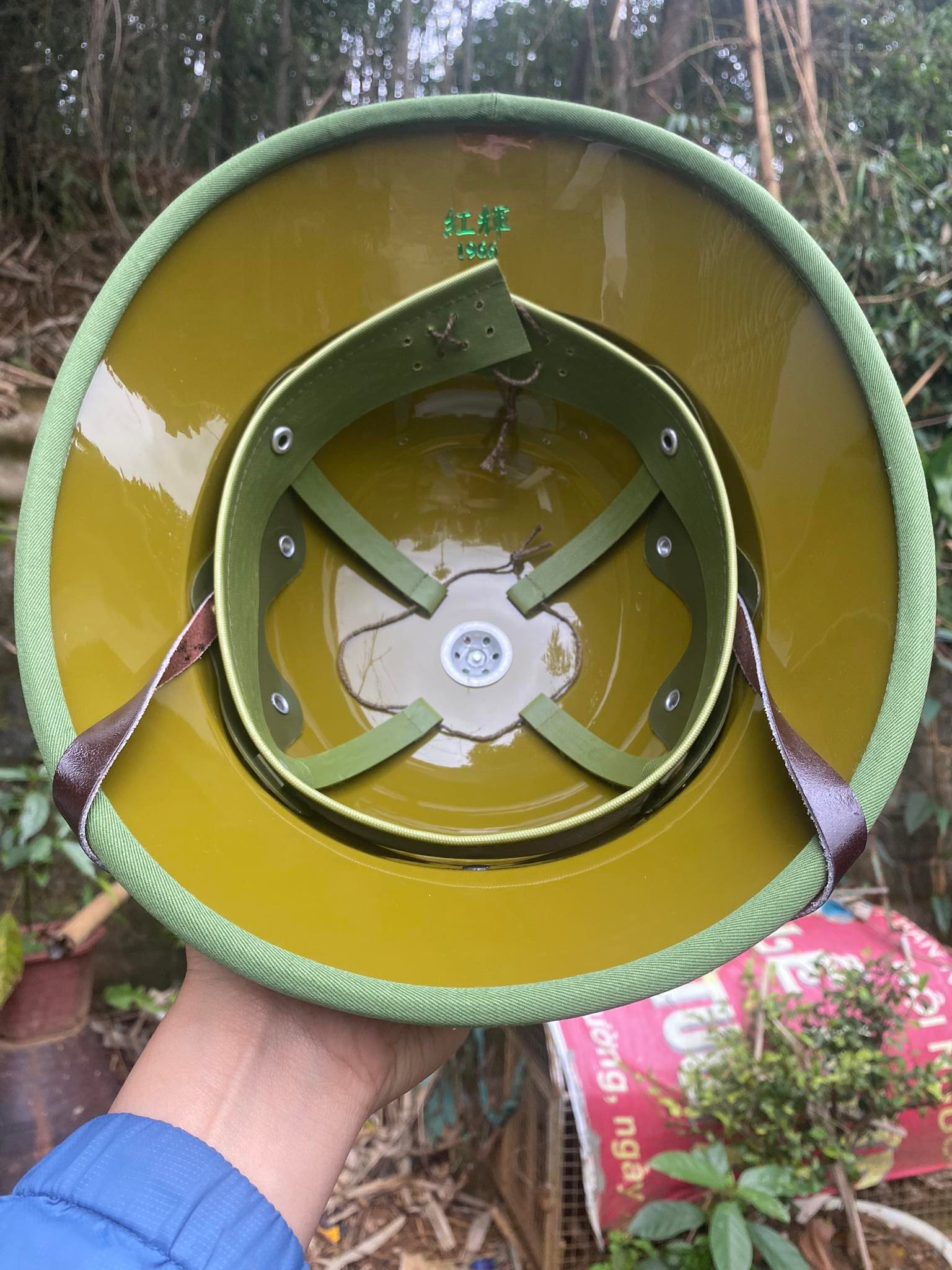 Mũ cối chuẩn 1966 Chịu lực chịu va đập cực tốt chống nước chống phai màu Lòng vàng Bọc Vải chuẩn đẹp Lỗ thông hơi,khuy làm bằng nhôm quai làm bằng da bò Cách điện,