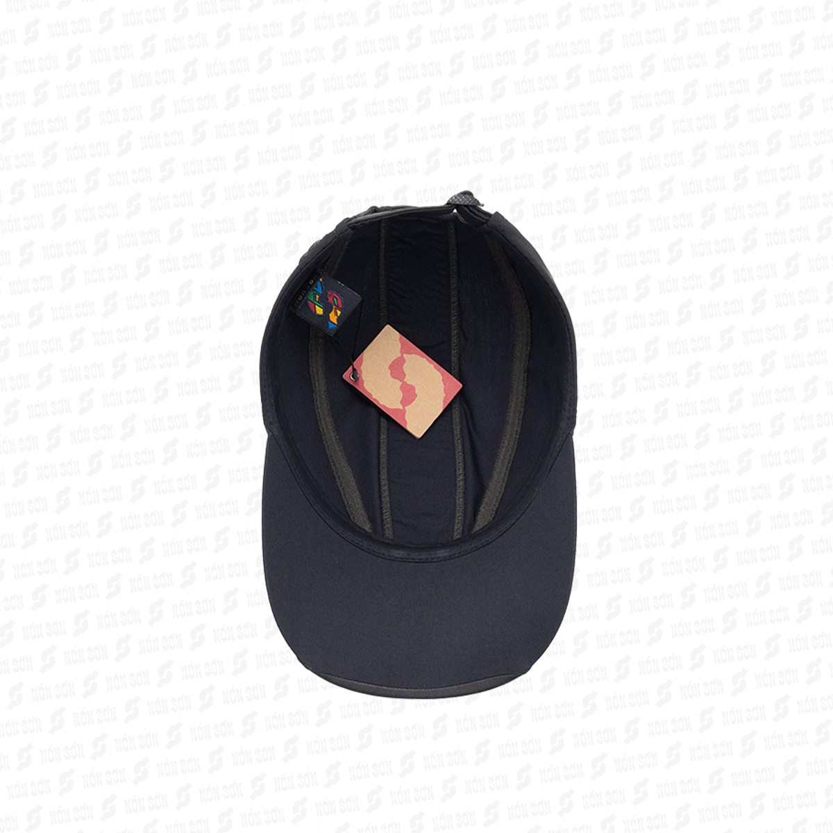 - Sử dụng kẹp phơi vào đai bên trong nón (vị trí giữa lưỡi trai), sao cho lưỡi nón hướng phía trên và dây đuôi hướng phía dưới.