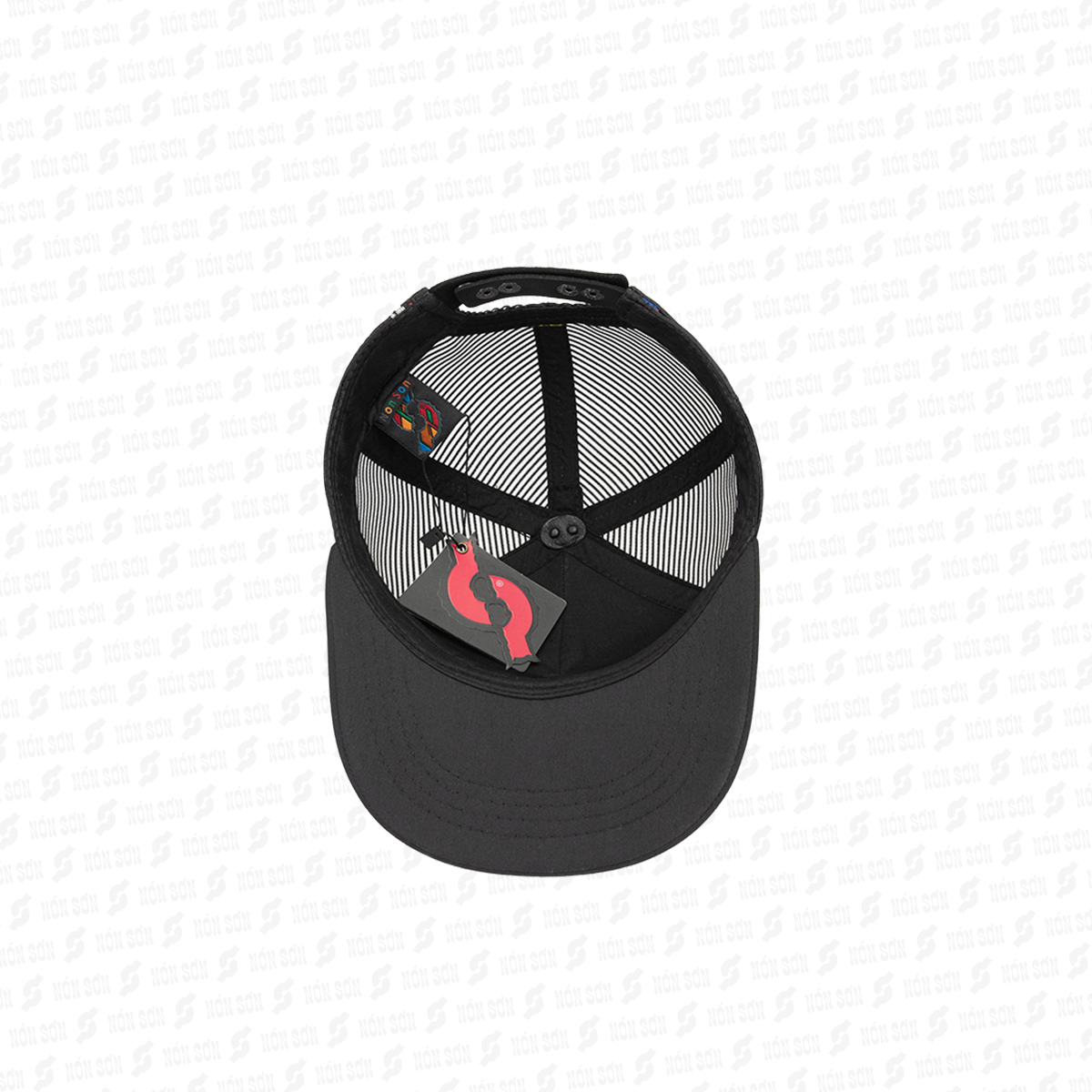 - Sử dụng kẹp phơi vào đai bên trong nón (vị trí giữa lưỡi trai), sao cho lưỡi nón hướng phía trên và dây đuôi hướng phía dưới.