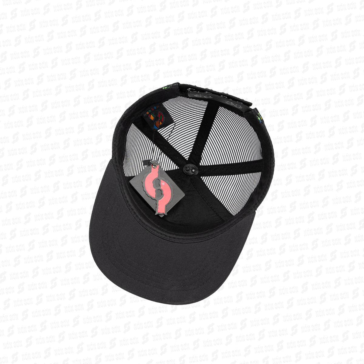 - Sử dụng kẹp phơi vào đai bên trong nón (vị trí giữa lưỡi trai), sao cho lưỡi nón hướng phía trên và dây đuôi hướng phía dưới.
