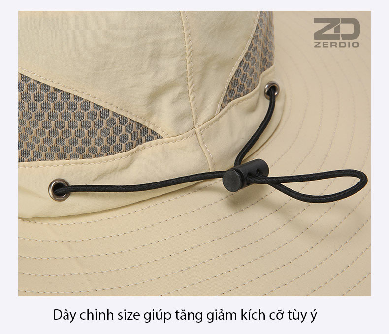Vải Kaki dày dặn nhưng không nóng vì là 100%cotton. Có dây đeo không lo gió bay. Nút bấm kim loại 2 bên vành nón để bẻ lên cho ngầu luôn. Shop nhận thêu logo