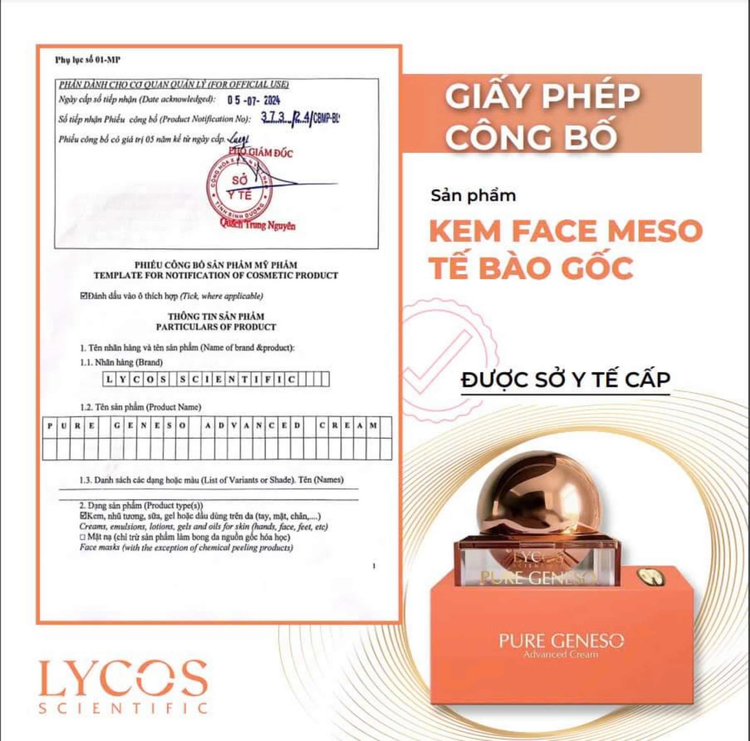 ✨[MUA 1 ĐƯỢC 2] Kem Face Meso Tế Bào Gốc Pure Geneso Advanced Cream Lycos 20g: Sáng mịn, bật tone, giúp da căng mướt mịn màng ngay sau khi sử dụng
