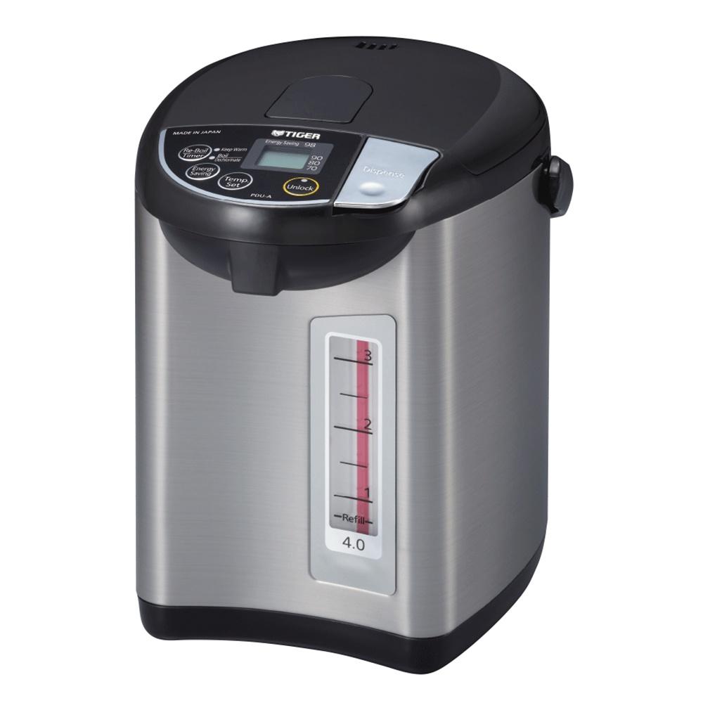 Bình Thủy Điện TIGER PDR-S40W   Dung tích 4 lít – Nhiệt độ nước nóng có thể được điều chỉnh theo nhu cầu của bạn. Chọn từ 98 °C, 90 °C, 80 °C và 70