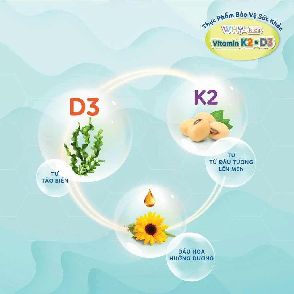 - Trẻ em và người lớn có nhu cầu bổ sung Vitamin D3 và Vitamin K2. THÀNH PHẦN