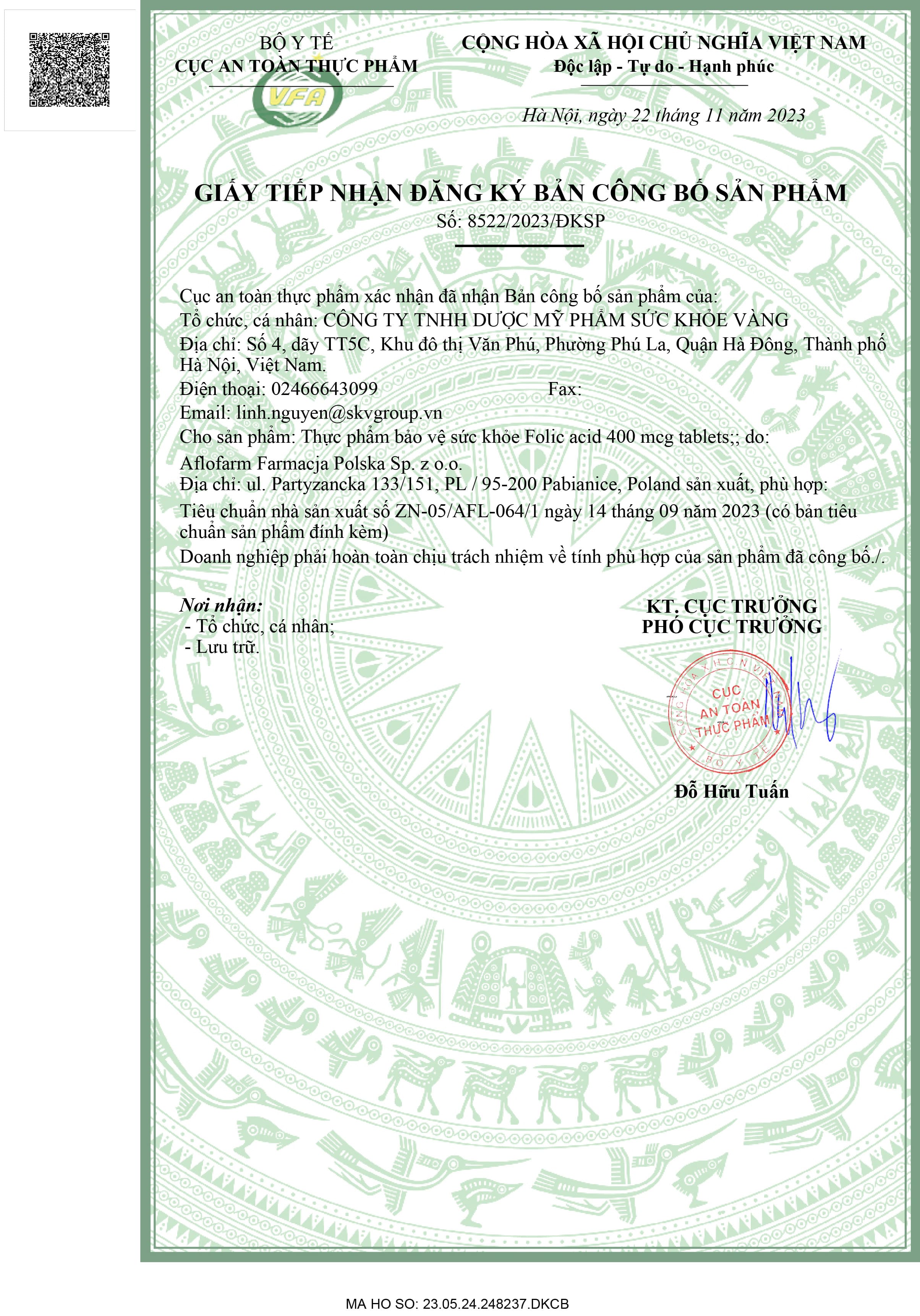 Viên uống Bổ sung Acid Folic với hàm lượng 400mcg là liều dùng khuyến nghị bởi CDC Hoa Kỳ giúp hỗ trợ thúc đẩy quá trình phát triển và phân chia tế bào cũng như sự hình thành của tế bào máu, hỗ trợ cho phụ nữ chuẩn bị mang thai và đang mang thai.