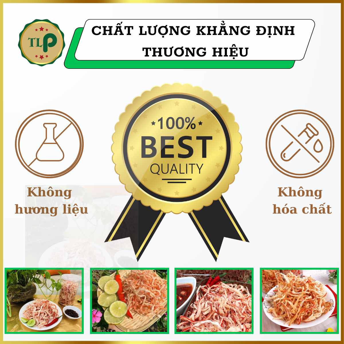 Thành phần: 90% mực khô xé sợi, 7% gia vị (đường, chất điều vị mononatri L-glutamat 621, muối, hạt nêm, ớt), 2% tỏi, 1% bơ. Hạn sử dụng: 6 tháng kể từ ngày sản xuất.