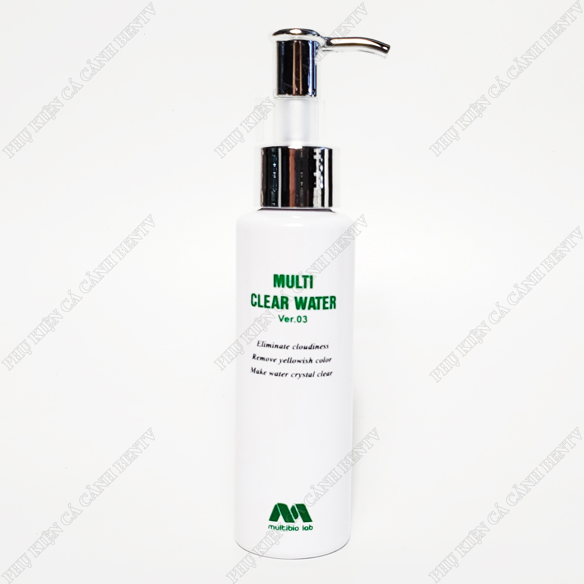 - Multi Clear Water ver 03 là chế phẩm làm trong nước cao cấp. Sản phẩm giúp loại bỏ các hiện tượng thường gặp như: màu vàng của nước do lũa gây ra, bụi bể liti hoặc bể bị đục khi mới setup một cách nhanh chóng. Chỉ sau 1-2 tiếng sau khi sử dụng nước bể có thể đặt được độ trong tuyêt đối.