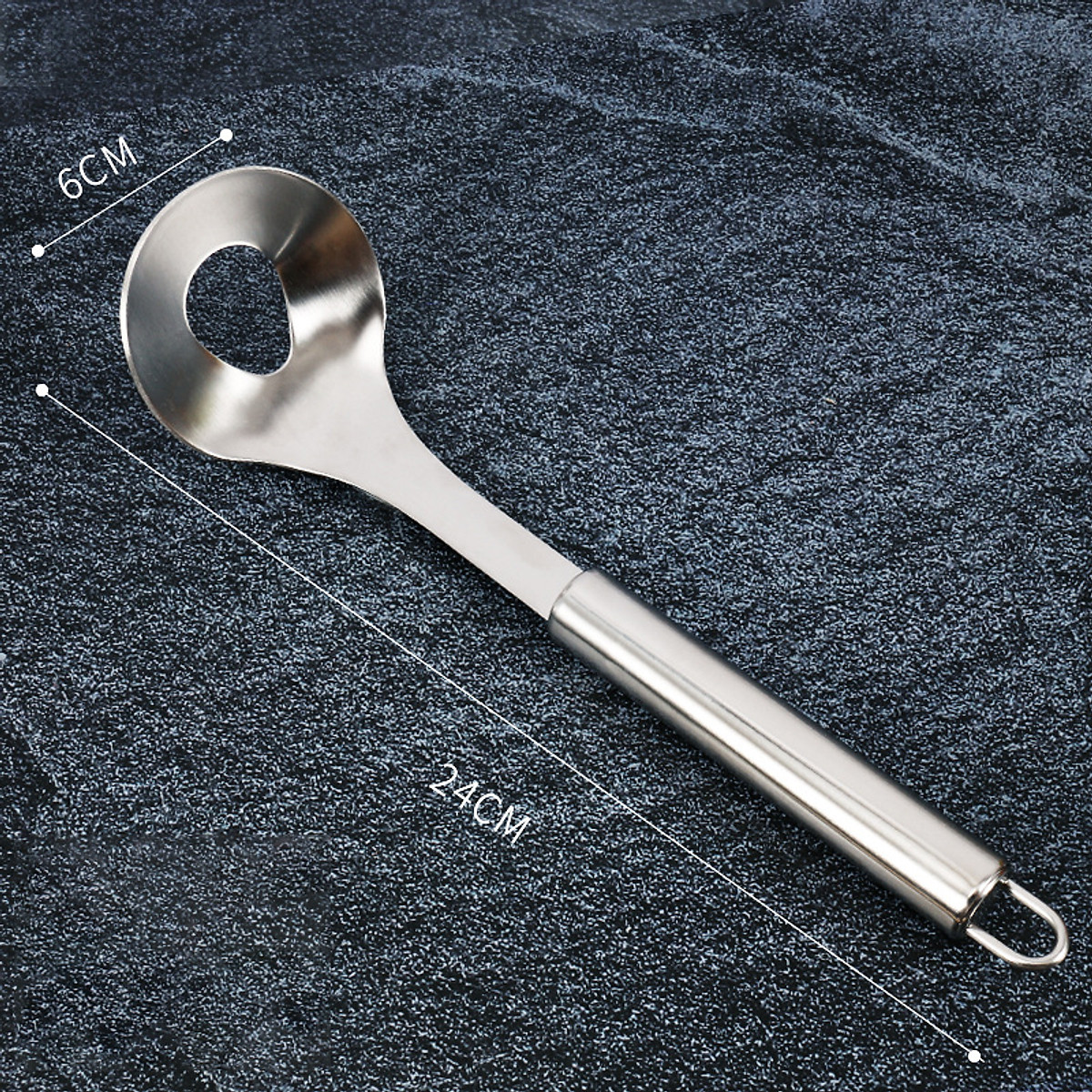 Dễ dàng loại bỏ thực phẩm như bánh cuốn nhờ đường cong nông Chất lỏng dư thừa dễ dàng thoát qua các khẩu độ lớn Một chiếc muôi hớt bọt là thiết bị nhà bếp