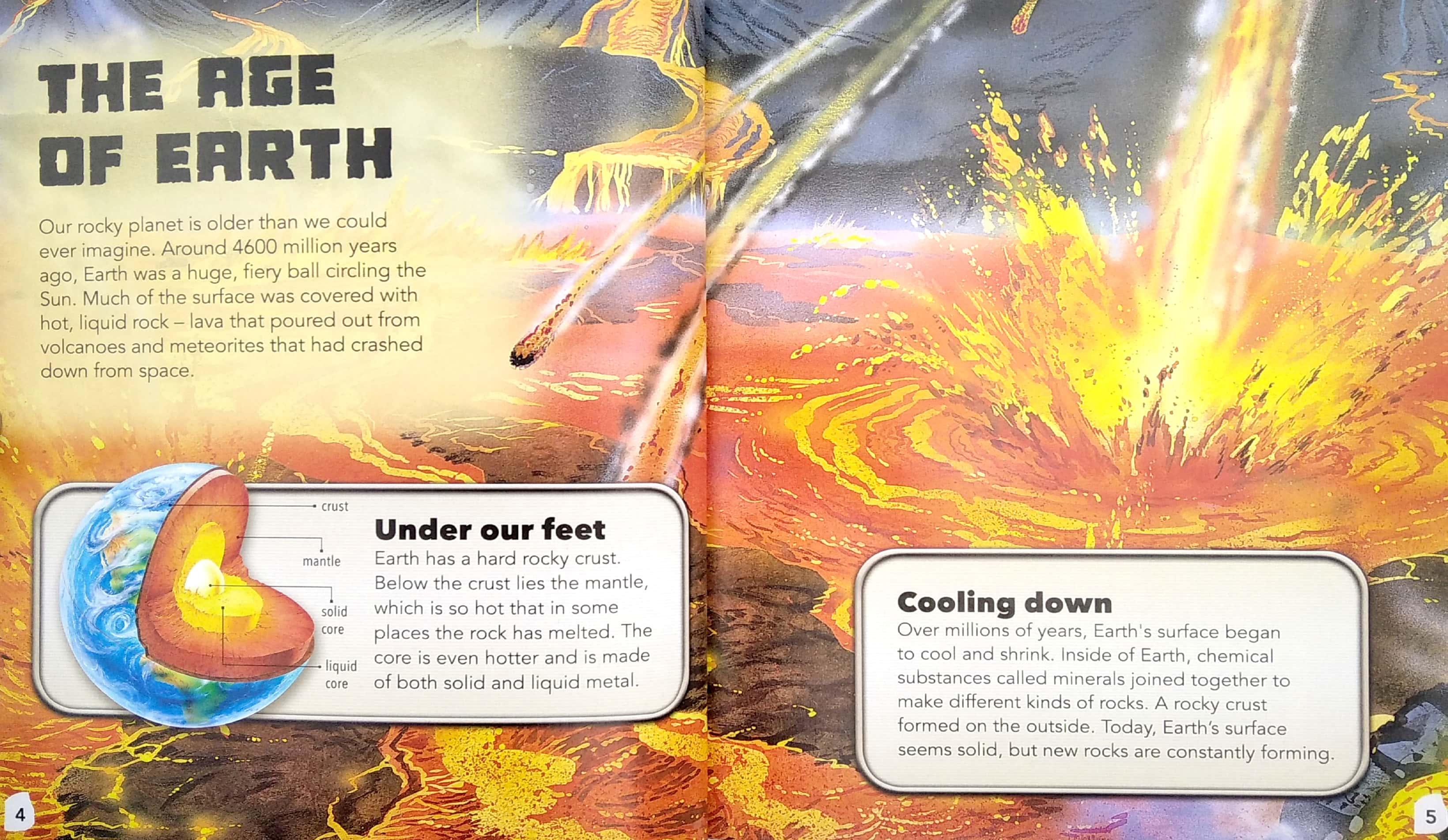 Pack up your gear and get ready to go on a dig. Whether it's iron ore, dazzling gemstones, or a prehistoric creature preserved in amber, exciting discoveries await budding paleontologists and geologists in this informative book. Large and detailed full-color spreads, complemented by clear, concise text unearth the mysteries of rocks, crystals, minerals, and fossils--how they are formed, where they are found, and how they are used. Includes an illustrated glossary and an index to sharpen the young reader's reference skills.