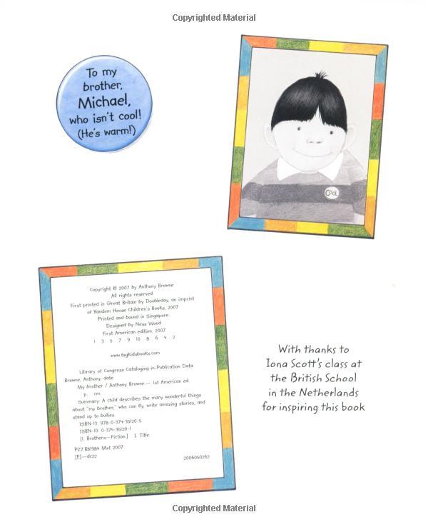 A humorous, affectionate tribute to brothers, perfect for adults and children to read together, and an ideal companion picture book to the bestsellers My Dad and My Mum.