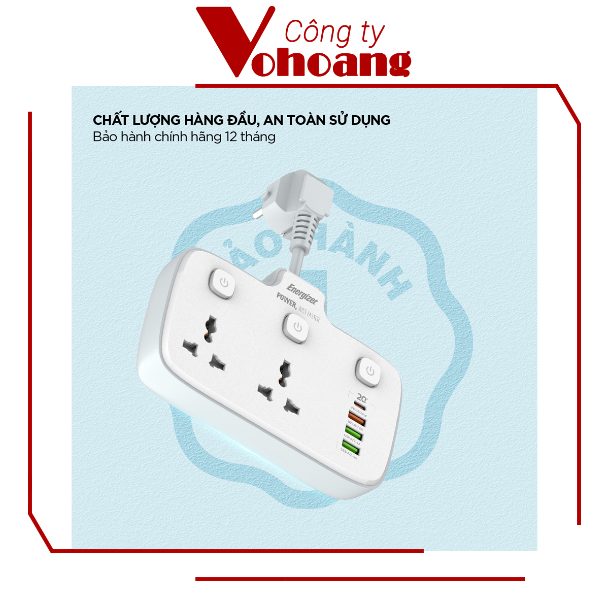 [Mỹ] Ổ cắm điện Energizer đa năng 2AC kèm 3USB-A và 1USB-C sạc nhanh PD (max PD 20W) - Energizer EPB2503EU