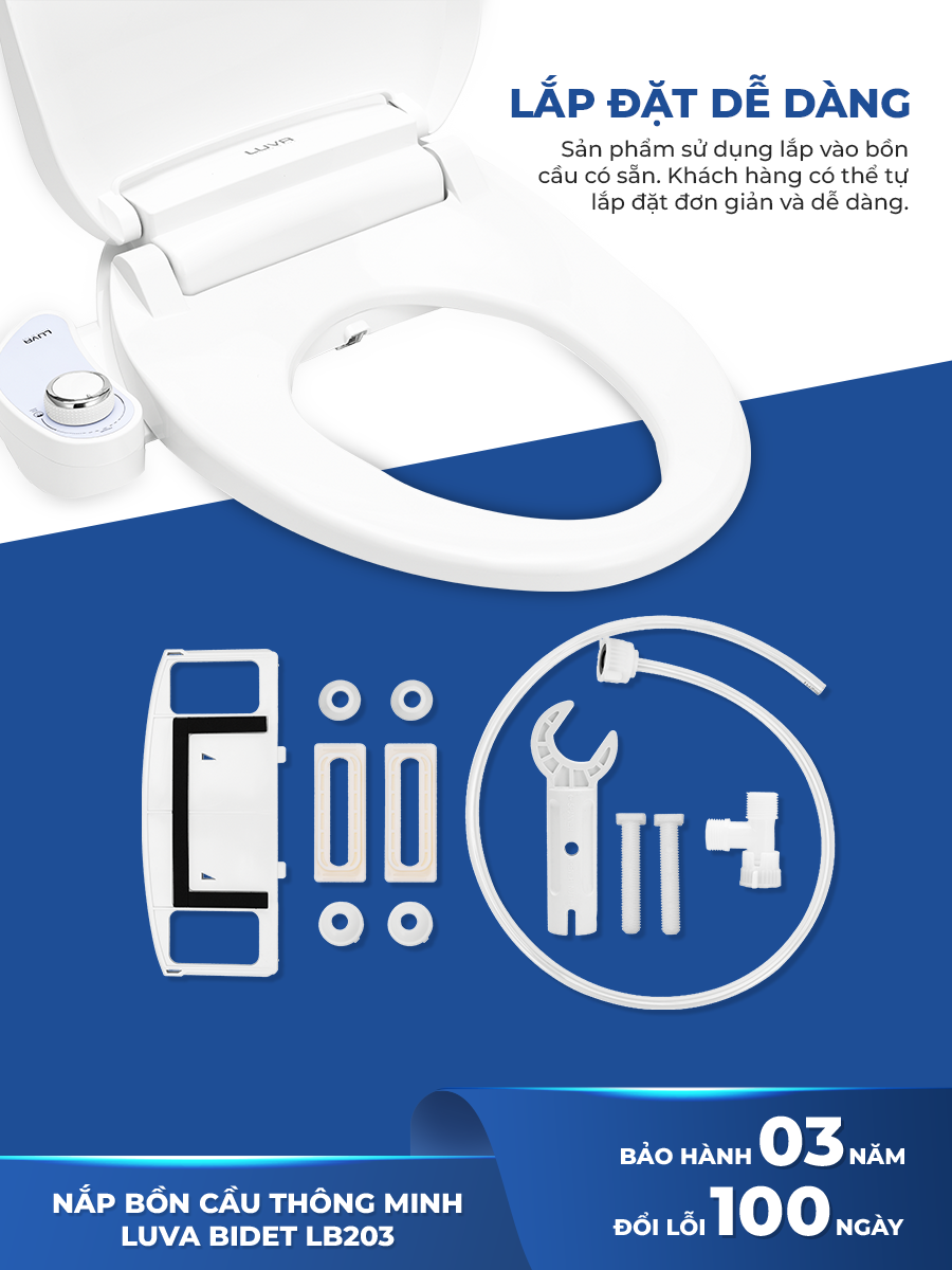 Mua tại TiktokNắp bồn cầu thông minh LUVA BIDET LB203, không dùng điện, tự rửa vòi phun, bảo hành 3 năm, đổi lỗi 100 ngày. Tặng lọc nước đa năng LUVA GK1