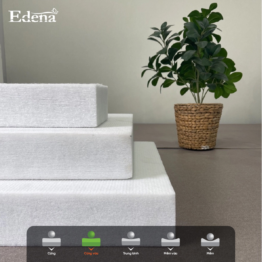 Nệm bông ép Edena được làm từ chất liệu hàng ngàn lớp bông cao cấp được xếp chồng lên nhau, tạo độ đàn hồi cao và không bị lún, xẹp. Vỏ đệm sử dụng chất liệu vải gấm nên bền và có hình thức đẹp, thân thiện với người sử dụng. Phần vỏ nệm được thiết kế thành 3 phần có khóa kéo để lồng 3 tấm ruột nệm vào một cách dễ dàng.