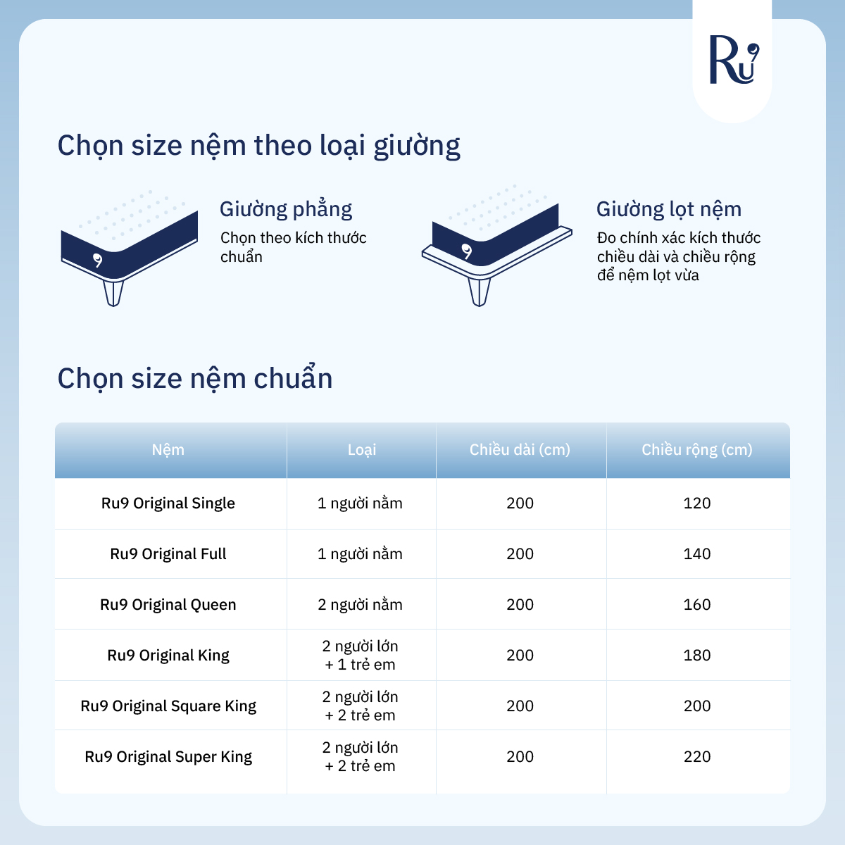 Mua tại TiktokNệm Foam Cao Cấp Ru9 Original 25cm - Trắng Xanh | 3 Lớp Foam Nâng Đỡ Cơ Thể | Bao Gồm 6 Kích Thước KHÔNG ÁP DỤNG 100 ĐÊM NGỦ THỬ