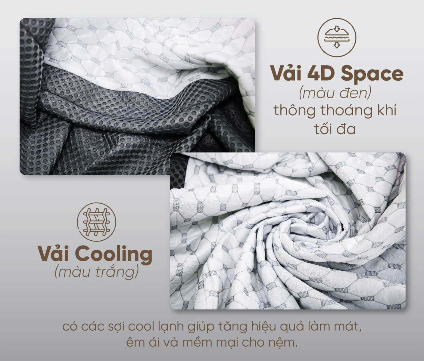 - Tính năng: nâng đỡ tối ưu các vùng khác nhau trên cơ thể, áo nệm được tích hợp chức năng chống nước, thoáng khí vượt trội - Độ dày nệm: 22 cm -