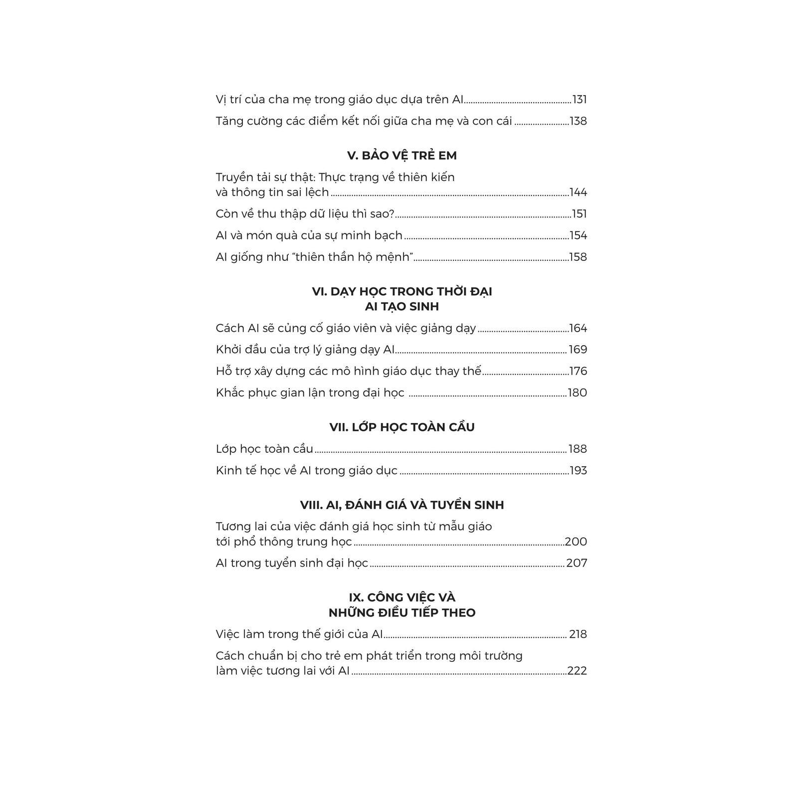Cuốn sách mang lại cái nhìn tổng thể về AI trong giáo dục, với những phân tích và giải pháp để tận dụng sức mạnh của AI một cách hiệu quả và có trách nhiệm. Vì vậy, cuốn sách dành cho những ai quan tâm đến tương lai giáo dục đều nên đọc và rộng ra hơn là những ai đang theo đuổi việc AI sẽ thay đổi cuộc sống của chúng ta.