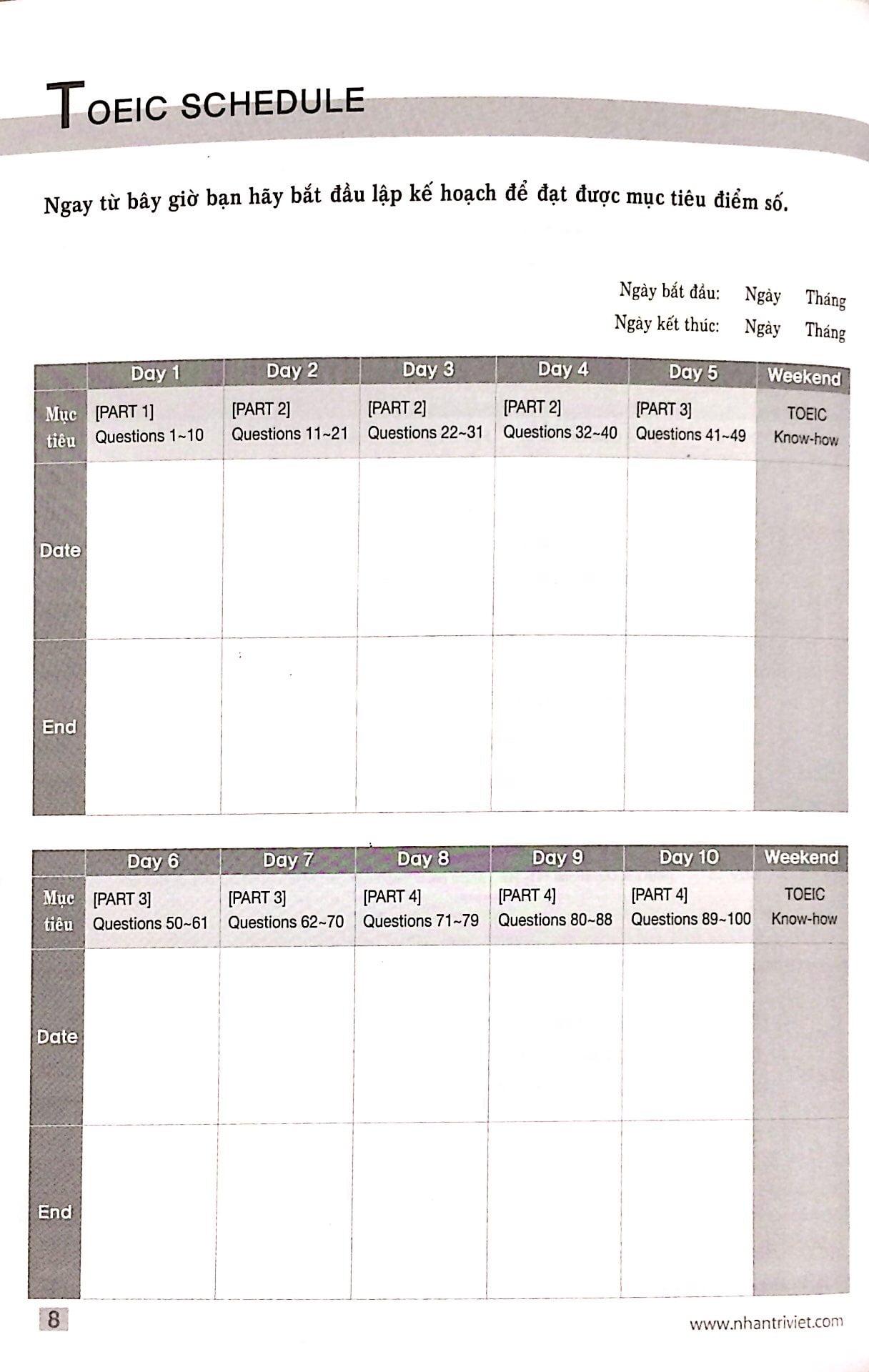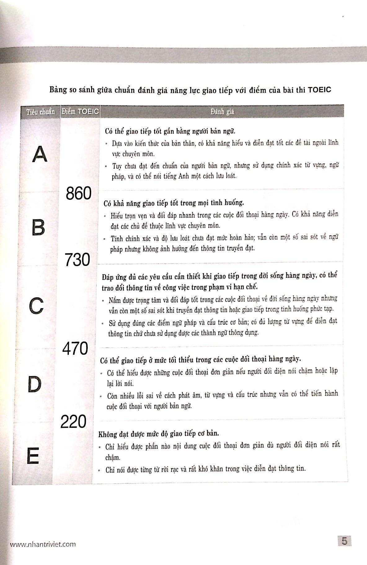 Trên thị trường hiện nay, có rất nhiều sách TOEIC dày đến 500 trang và mỗi bộ gồm có hai quyển: Listening và Reading. Tuy nhiên, tìm được quyển sách phù hợp với khả năng của bản thân bạn không phải là việc dễ dàng. Vì vậy, bộ sách này được chia thành 4 cấp độ: 520 điểm , 620 điểm , 730 điểm và 860 điểm . Ở mỗi cấp độ là các nội dung trọng tâm tương ứng. Nhờ vậy, người học có thể lựa chọn giáo trình phù hợp với trình độ của mình.