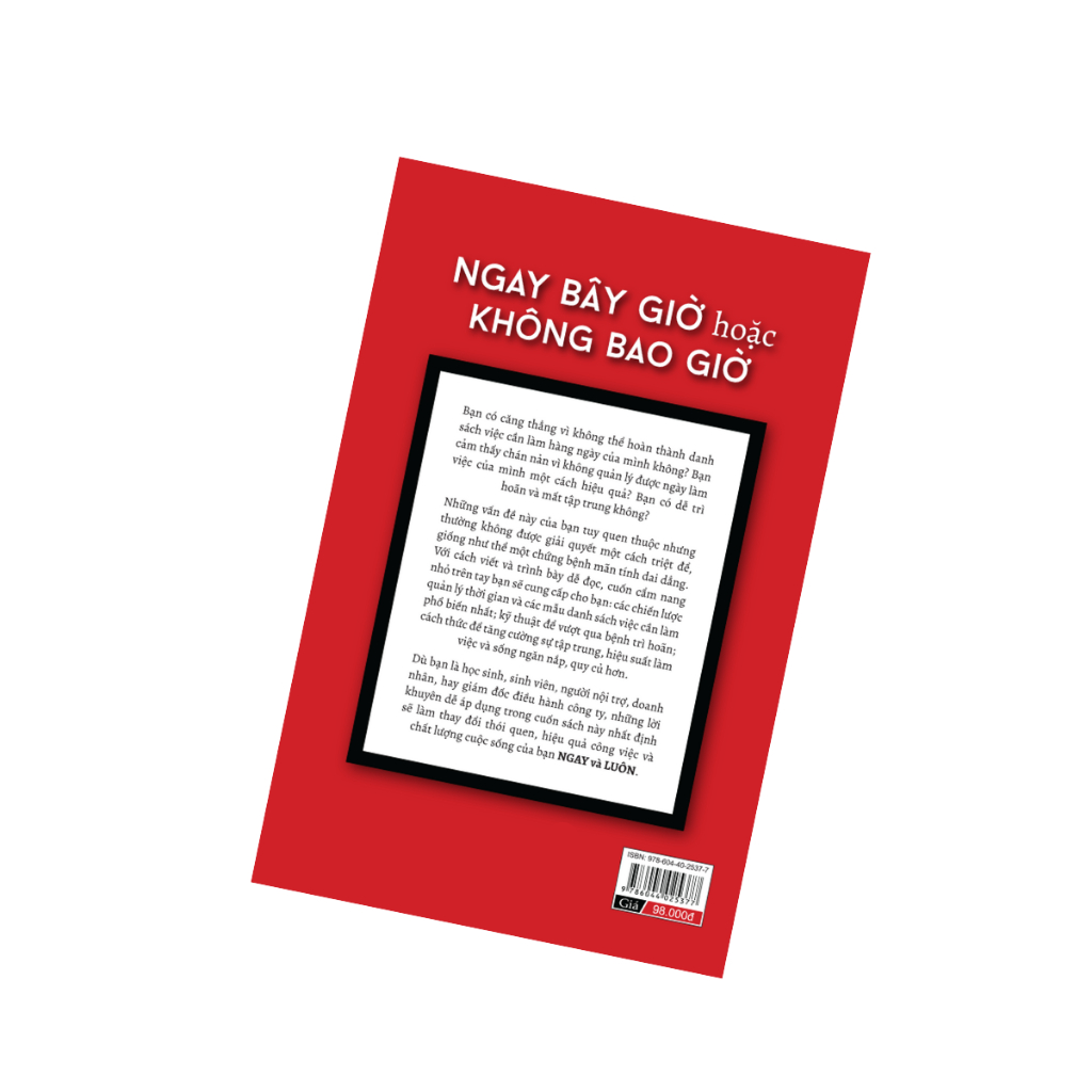NGAY VÀ LUÔN Trong cuộc sống đời thường, bạn làm việc và có hàng tá những công việc cần phải làm, nhưng việc quản lý “quỹ thời gian” đôi khi khiến bạn thấy “nhưng nhức” cái đầu. Đôi khi bạn tự đặt ra cho bản thân mình những câu hỏi như sau: Bạn có căng thẳng vì không thể hoàn thành danh sách việc cần làm hằng ngày của mình không? Bạn cảm thấy chán nản vì không quản lý được ngày làm việc của mình một cách hiệu quả? Bạn có dễ trì hoãn và mất tập trung không? Bạn có bao giờ thấy mệt mỏi bởi việc lập kế hoạch nhưng lại nhận về kết quả không mong muốn? Hay đơn giản bạn chẳng có thời gian cho gia đình, con cái, không cân bằng được giữa cuộc sống và công việc? Những vấn đề kể trên không chỉ dành cho bạn, mà có lẽ dành cho tất cả chúng ta “đều trong guồng quay bất tận của xã hội”, những vấn đề này tuy quen thuộc nhưng dường như không được giải quyết một cách triệt để, và nếu để lâu ngày, dai dẳng, sẽ thành một chứng bệnh mạn tính, khiến bạn bị lệ thuộc, bó buộc và không có không gian để “thở”, khiến bạn mất thời gian hơn, không thể tập trung để hoàn thành công việc một cách tuần tự hiệu quả, dẫn đến tình trạng mệt mỏi, căng thẳng trong cuộc sống hiện đại. “Ngay và luôn” với cách viết và trình bày dễ đọc, cuốn cẩm nang nhỏ trên tay bạn sẽ cung cấp cho bạn: các chiến lược quản lý thời gian và các mẫu danh sách việc cần làm phổ biến nhất; kỹ thuật để vượt qua bệnh trì hoãn; cách thức để tăng cường sự tập trung, hiệu suất làm việc và sống ngăn nắp, quy củ hơn. Dù bạn là học sinh, sinh viên, người nội trợ doanh nhân hay giám đốc điều hành một công ty, dám chắc rằng, những lời khuyên trong cuốn sách này nhất định sẽ làm thay đổi thói quen, hiệu quả trong cuộc việc, cũng như nâng cao chất lượng cuộc sống của bạn “ngay và luôn”.