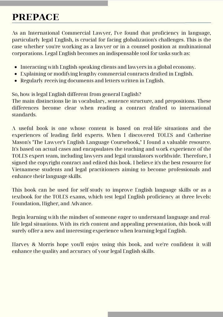 Bạn đang tìm kiếm một nguồn tài liệu đáng tin cậy để nâng cao vốn từ vựng tiếng Anh pháp lý trong lĩnh vực doanh nghiệp và lao động? Hãy để cuốn sách "Nghề luật" trở thành người bạn đồng hành đắc lực trên con đường sự nghiệp của bạn!