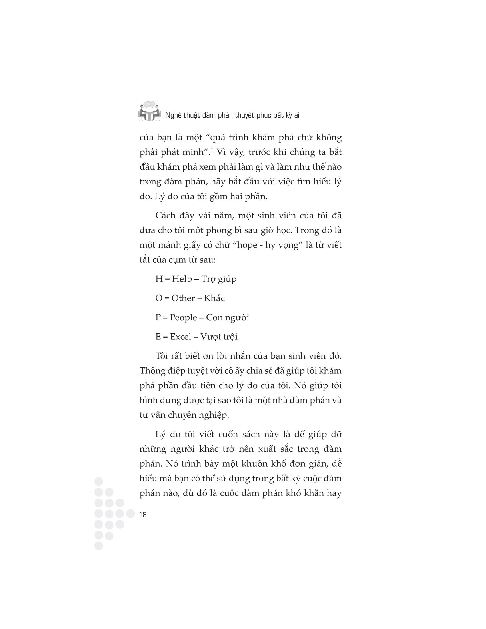 Sự thật là các nhà lãnh đạo doanh nghiệp và tổ chức dành hơn một nửa thời gian làm việc của m.ình để tham gia vào quá trình đàm phán. Đây là cách họ thực hiện các thỏa thuận, lãnh đạo nhân viên và quản lý các mối quan hệ. Hầu hết các nhà lãnh đạo học cách đàm phán trong công việc thông qua một quá trình thực hành và tự rút ra lỗi sai của m.ình. Trong thị trường cạnh tranh ngày nay, không có thời gian để thử nghiệm, cũng không có chỗ để mắc lỗi.