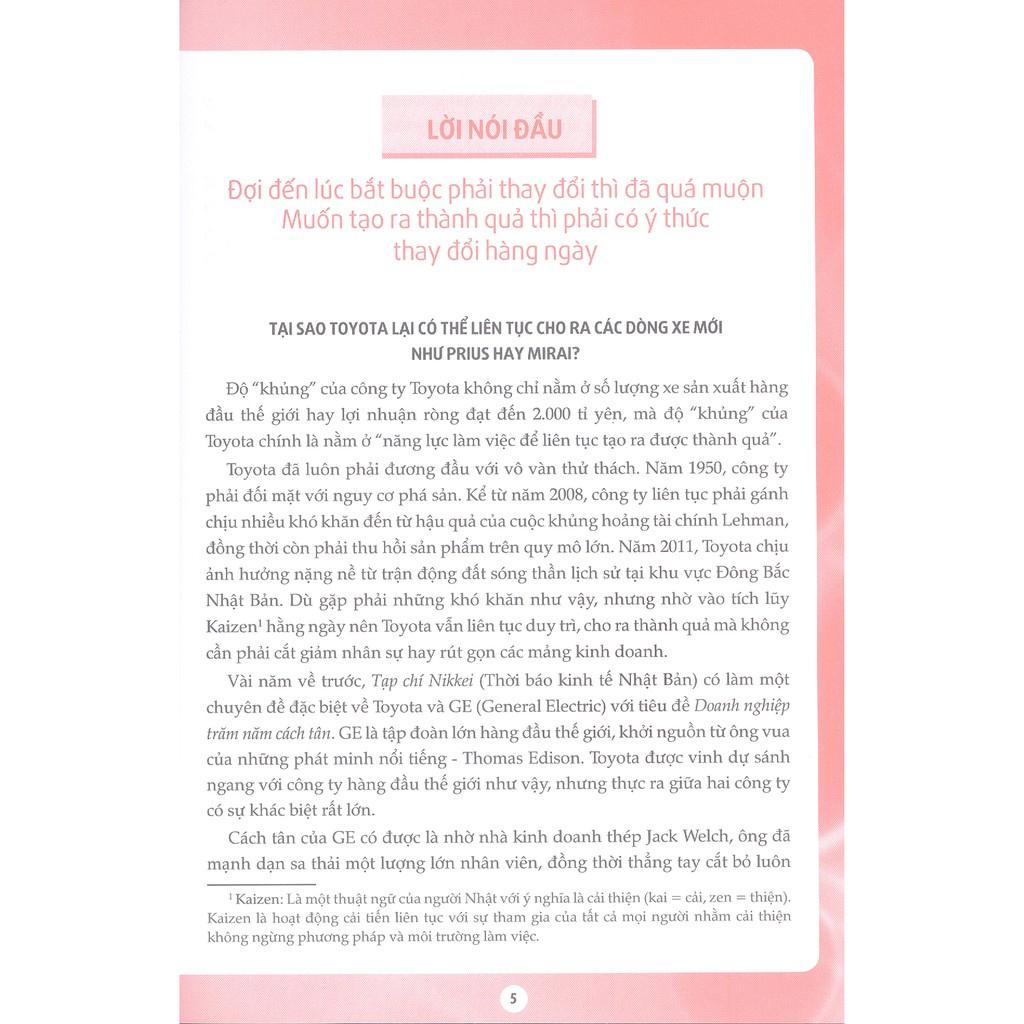 mới chịu thay đổi, Toyota quan niệm cần tiến hành kaizen hằng ngày và biến đó thành chuyện đương nhiên. Khi kinh