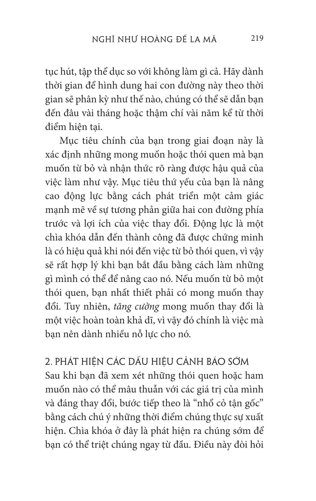 Toàn bộ cuốn sách này được thiết kế để giúp bạn theo bước Marcus trong việc có được sức mạnh tinh thần của nhà khắc kỷ và cuối cùng là một cảm giác thỏa mãn sâu sắc hơn.