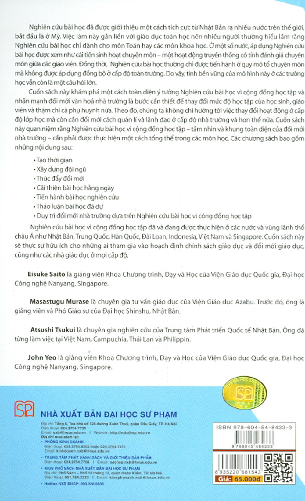 Nghiên cứu bài học và Công động học tập đã và đang được thực hiện ở các nước và vùng lãnh thổ châu Á như Nhật Bản, Trung Quốc, Hàn Quốc, Đài Loan, Indonesia, Việt Nam và Singapore. Cuốn sách này sẽ thực sự hữu ích cho những ai tham gia vào hoạch định chính sách giáo dục và cũng như các nhà giáo dục ở mọi cấp độ.