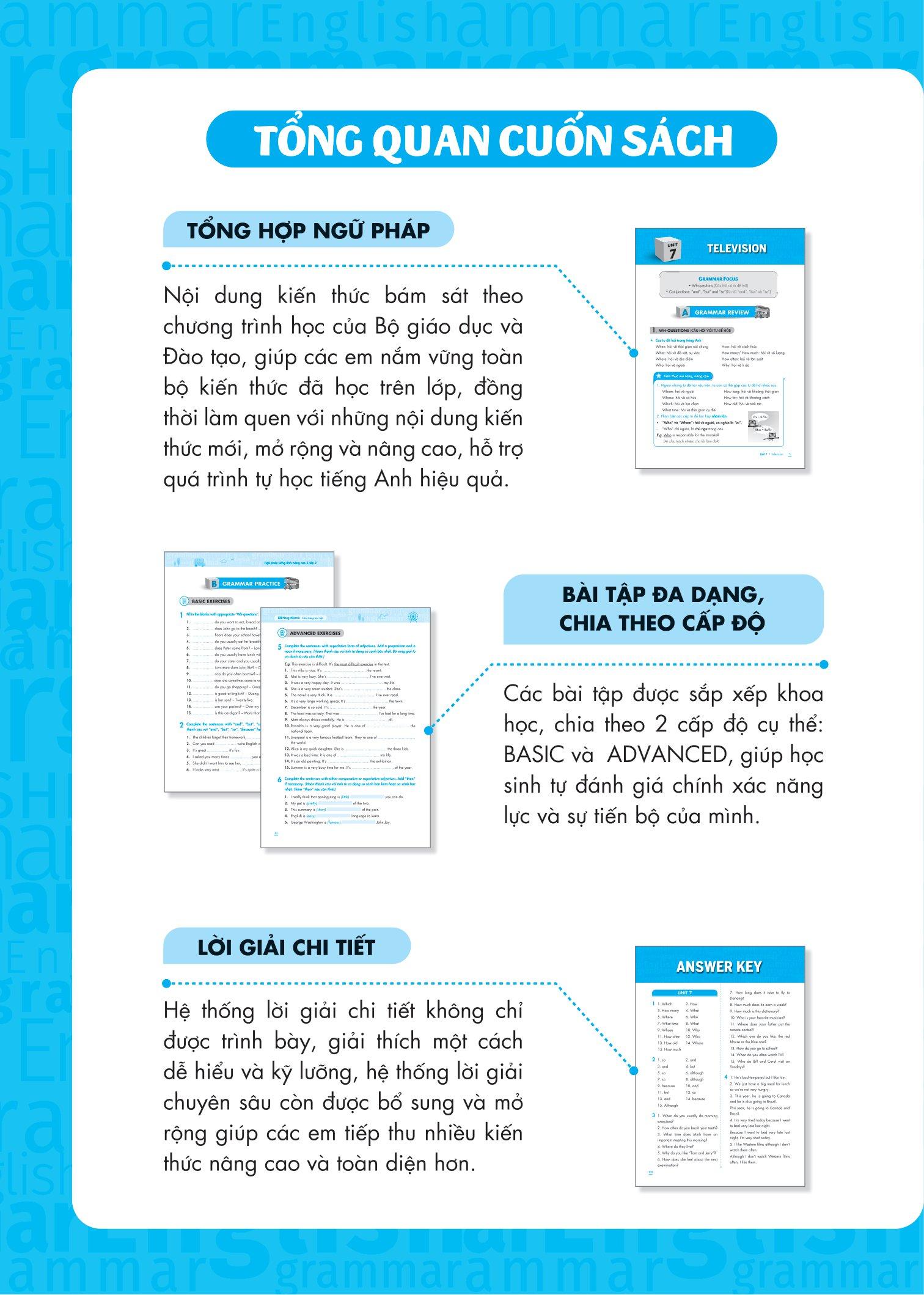 - Tổng hợp đầy đủ, rõ ràng kiến thức ngữ pháp bám sát theo chương trình học