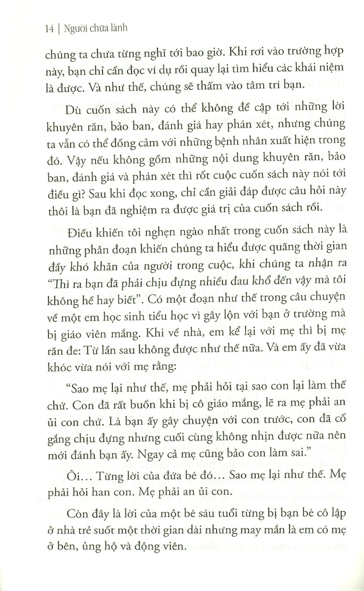 Cuốn sách này chính là cẩm nang hướng dẫn hành động chứa đựng toàn bộ tình cảm và kinh nghiệm trị liệu nhiều năm của chuyên gia đều trị tâm lý Hyesin Jeong. Tác giả cũng nhấn mạnh rằng, đồng cảm với mọi người cũng có nghĩa là chúng ta đang cứu giúp chính m.ình.