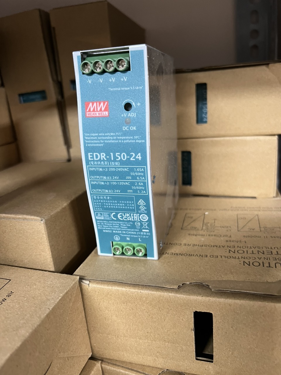 - Thông số: 156W / 230VAC 125W / 115VAC – 24V – 6.5A / 230VAC 5.2A / 115VAC 0 ~ 6.5A / 230VAC 0 ~ 5.2A / 115V - Nhà sản xuất: Meanwell - Tình