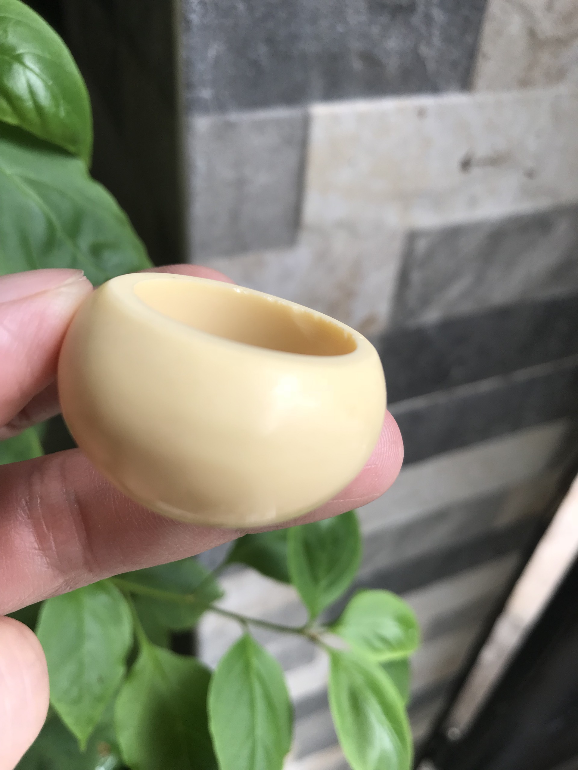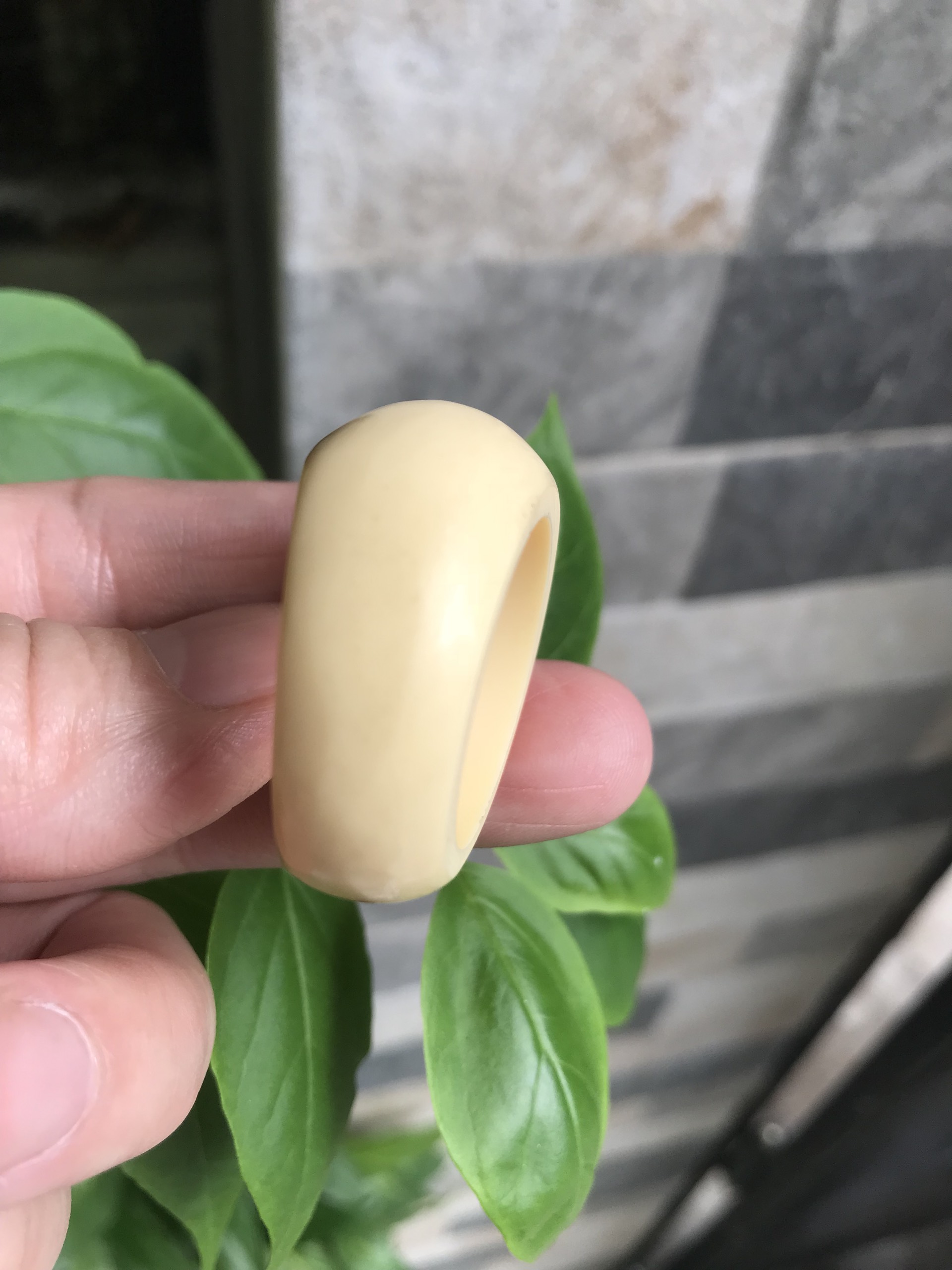 ✨Nhẫn Nam Giả Ngà hay Xương Mỹ Nghệ Kiểu Bầu Tròn to phía trên dưới nhỏ màu trắng Ni 23mm Cao 18mm Dầy 8mm Dành Cho Các Anh Nam đeo nhẫn 23mm rẻ đẹp ạ