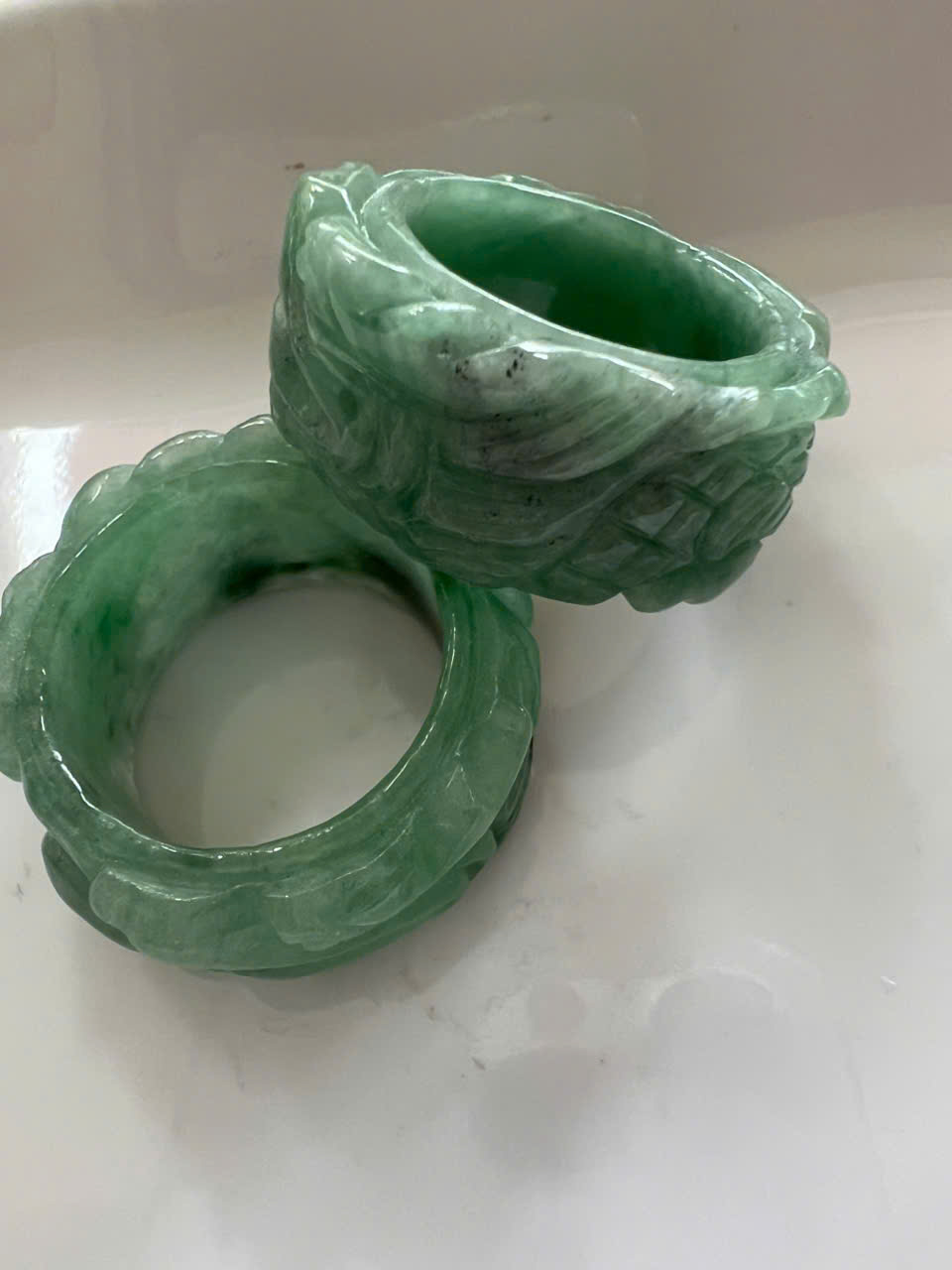 Nhẫn Càn long ngọc bích, size 12, đá hóa ngọc, dành cho nam từ 65kg trở lên Chất liệu: đá Marble hoa thiên nhiên thấu quang( Đá hóa ngọc) Chế tác: thủ công Cỡ nhẫn: