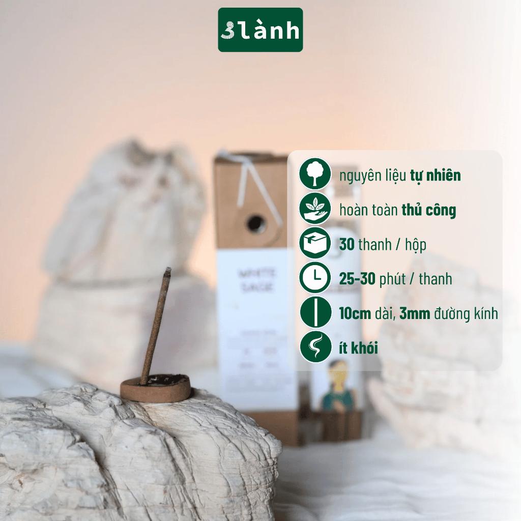 Thông tin sản phẩm Nhang Thanh Thủ Công Xô Thơm Trắng (White Sage) 3 Lành Nhang Xông Thơm Thanh Tẩy Tự Nhiên