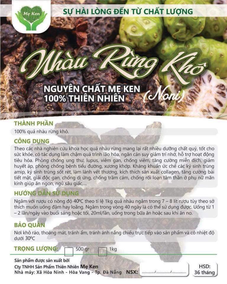 NHÀU RỪNG KHÔ NGUYÊN CHẤT MẸ KEN (NONI) (500g)