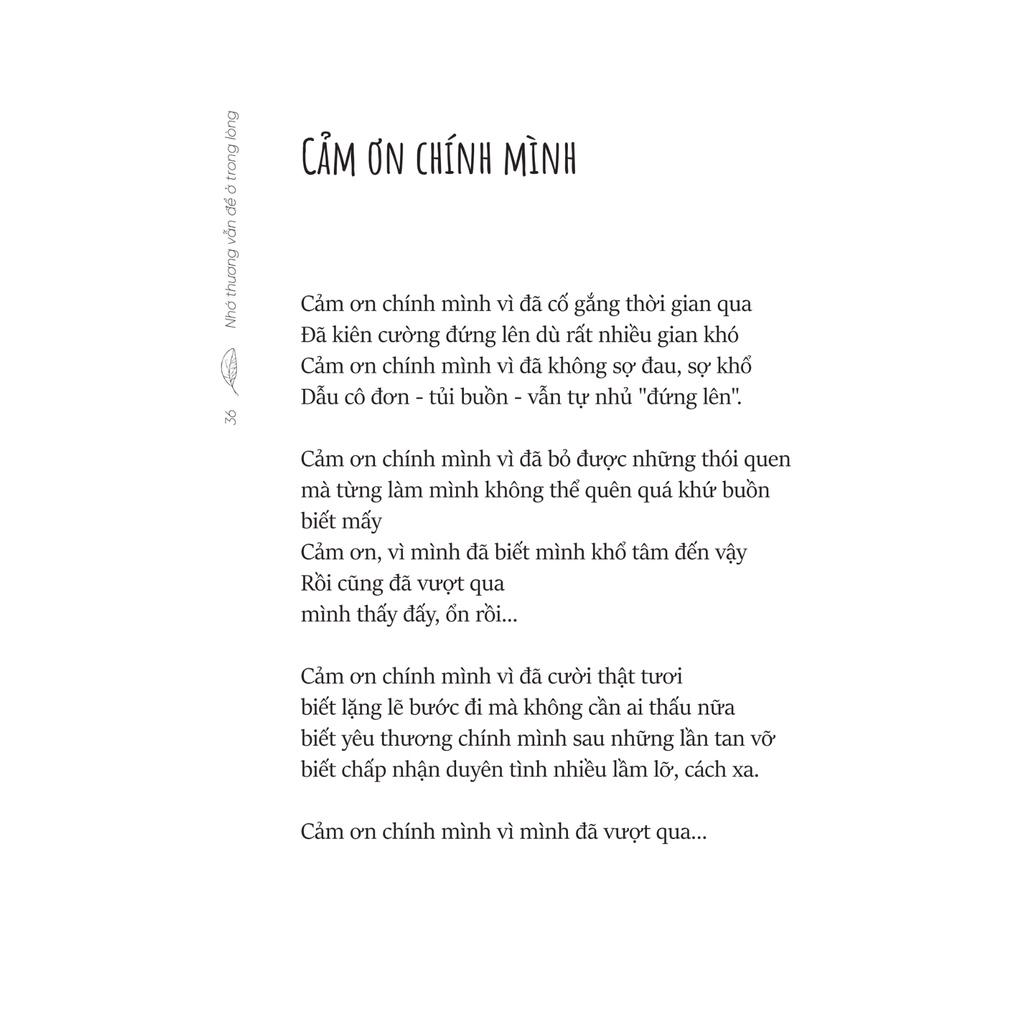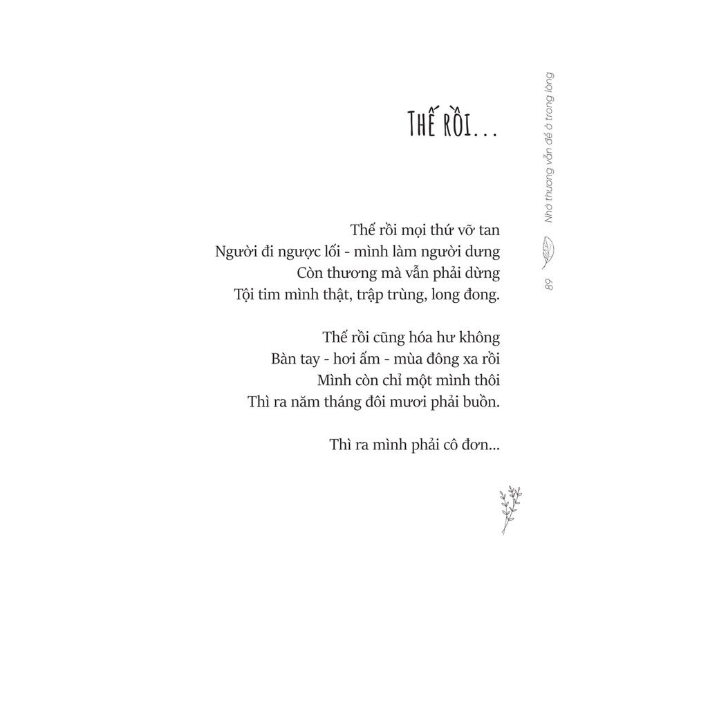 Nếu bạn muốn tìm lại chút bình yên và sống trọn vẹn với cảm xúc bên trong chính mình thì hãy để “Nhớ thương vẫn để ở trong lòng” dịu dàng đến bên bạn, nhé! “Nhớ thương vẫn để ở trong lòng" - Cuốn sách dành tặng những ai lỡ thương một người không thương mình…