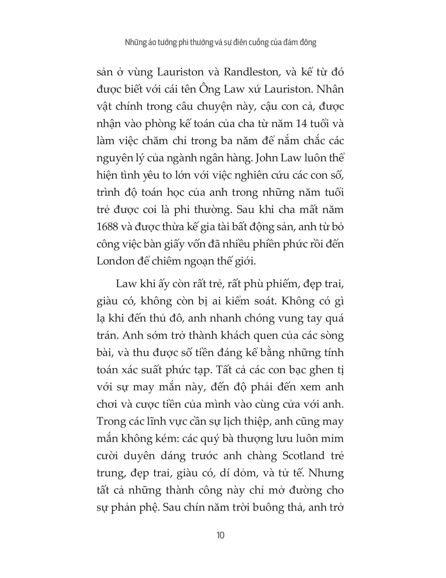 Xuất bản lần đầu vào năm 1841, cuốn sách “Những ảo tưởng phi thường và sự điên cuồng của đám đông” được coi là cuốn sách hay nhất từng viết về tâm lý thị trường. Đặc biệt, các chương về ba cơn cuồng tài chính khét tiếng - Kế hoạch Mississipi của John Law, Bong bóng South-Sea và Cơn sốt hoa Tulip.