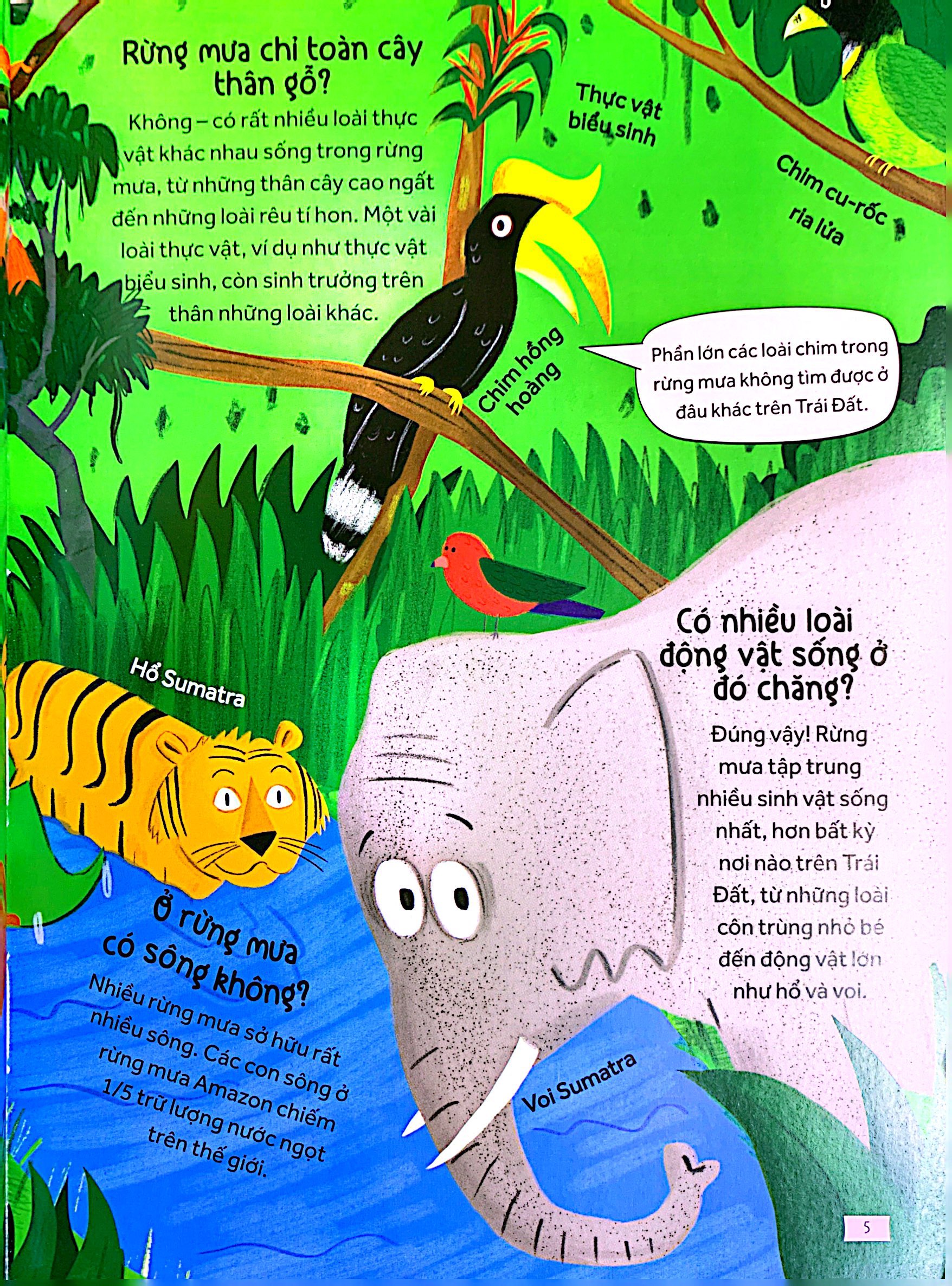Nội dung phong phú: Cuốn sách bao gồm nhiều chủ đề khác nhau, từ những câu hỏi đơn giản đến những vấn đề phức tạp về rừng mưa, giúp người đọc có cái nhìn toàn diện về hệ sinh thái này.