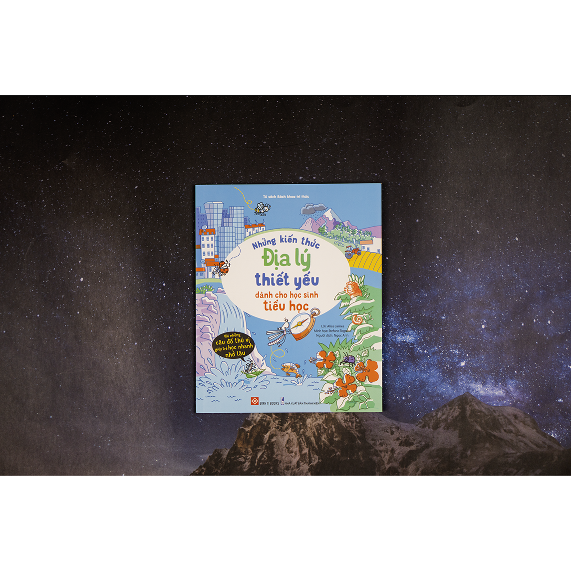 Cuốn sách Những kiến thức địa lý thiết yếu dành cho học sinh tiểu học giới thiệu những kiến thức cơ bản về địa lý với những lời giải thích đơn giản, kết hợp các trò chơi câu đố thú vị. Từ biển khơi bao la đến những quốc gia rộng lớn, từ thành phố vui nhộn đến thôn làng yên tĩnh, mỗi điểm dừng trong chuyến hành trình lý thú mà cuốn sách mang lại hứa hẹn sẽ khơi dậy sự tò mò và khám phá ở các con.