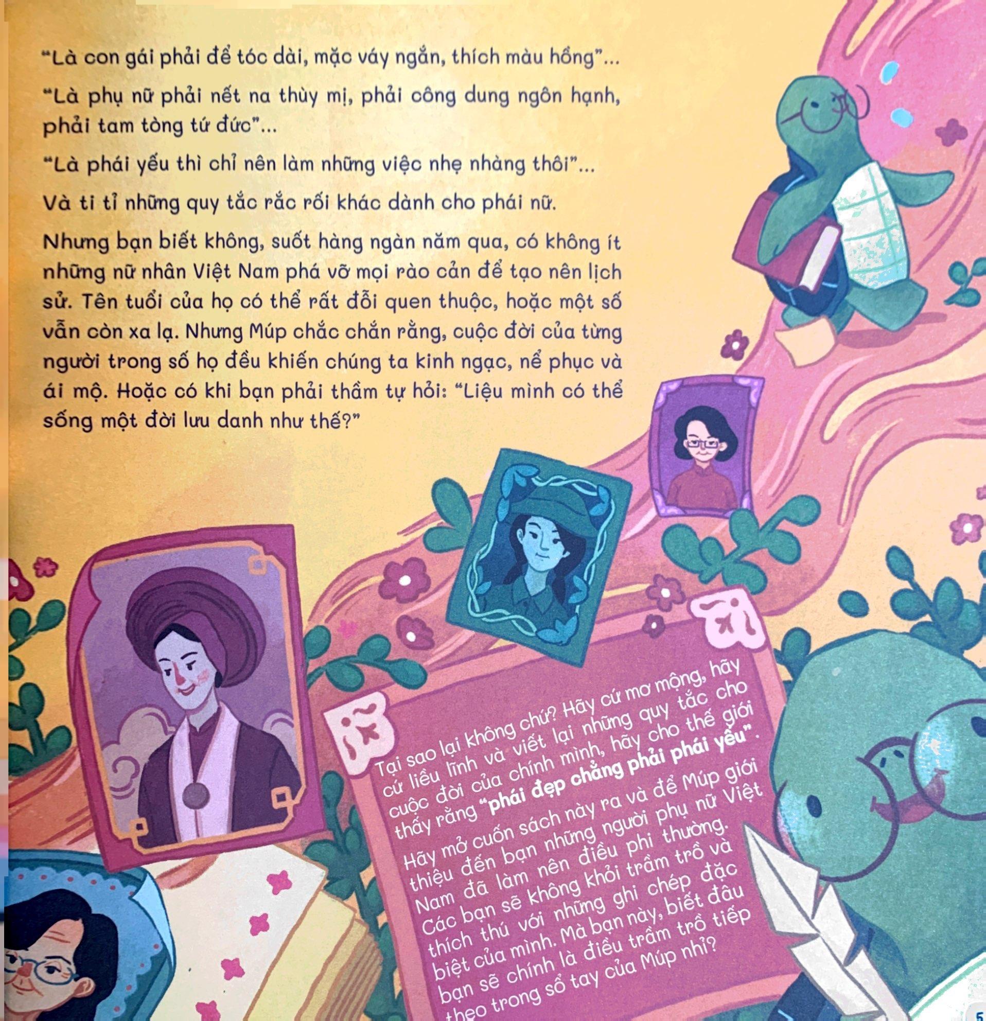 Các bạn nhỏ vẫn thường được người lớn kể cho nghe biết bao câu chuyện lịch sử mà ở đó, thường có những ông vua anh minh, được mệnh danh là “thiên tử”, những vị tướng oai dũng, tầm vóc to lớn, đầu đội trời, chân đạp đất hay những thần đồng, ông trạng cũng toàn là những người đàn ông làm vinh danh gia tộc, dòng họ hay tài trí hơn người. Sẽ thế nào nếu chúng ta cũng tìm hiểu về các giai đoạn lịch sử dân tộc nhưng thông qua câu chuyện của những người phụ nữ nhì? Để các bạn biết rằng lịch sử Việt Nam cũng có nữ hoàng, nhiều không kể xiết các vị nữ tướng anh dũng giết hàng vạn giặc và cả những tài nữ khiến đấng mày râu phải quỳ gối nể phục.